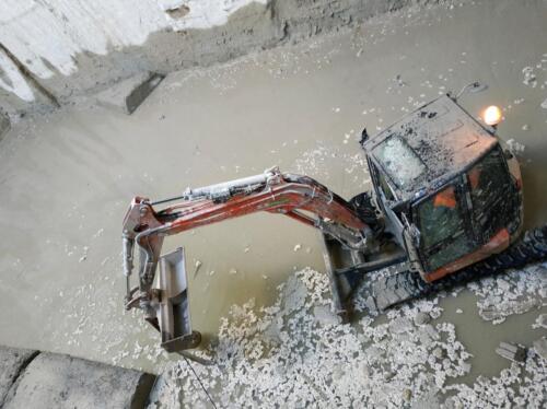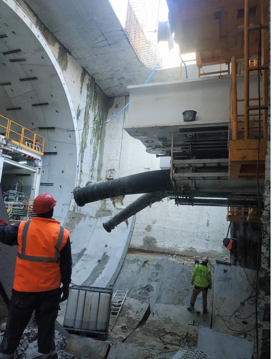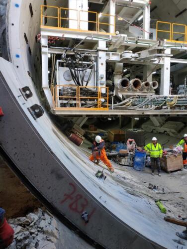 – Przy pomocy maszyny TD trwa wiercenie otworów i montaż kotew dla wsporników pod prefabrykaty, czyli elementów koniecznych do wykonania między innymi jezdni czy pułapu dla kanału wentylacyjnego, znajdującego się w górnej części rury tunelu – wyjaśnia Jacek Król. – Do komory startowej wprowadzono również maszynę TULC, która będzie służyć do betonowania i deskowania wsporników oraz montażu prefabrykatów konstrukcji wewnętrznych.