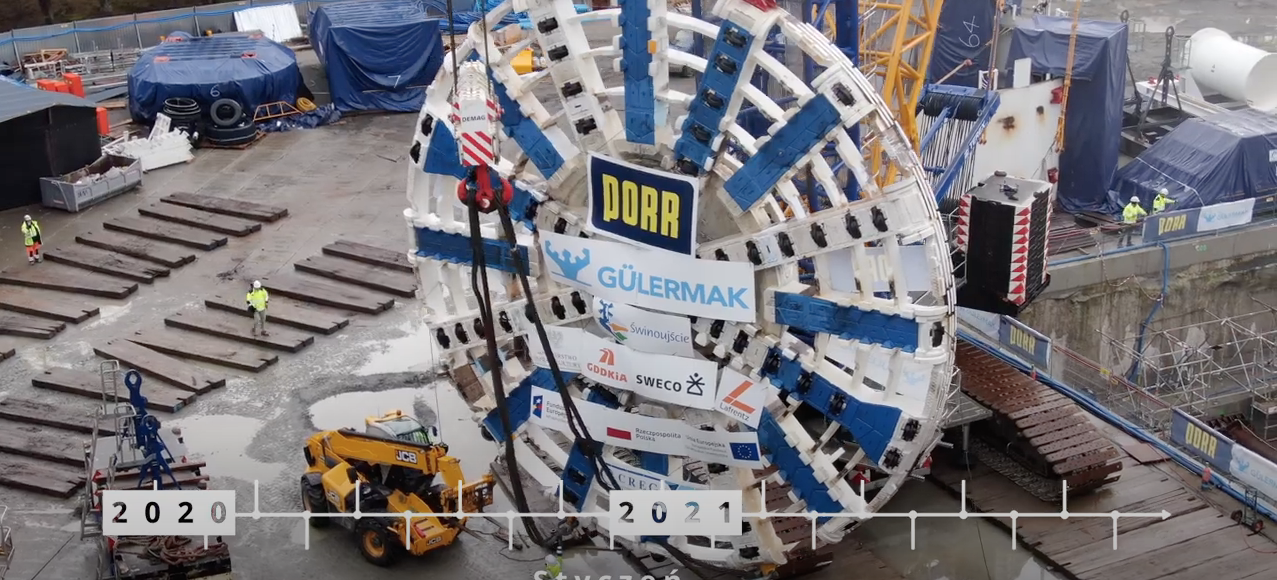 W październiku 2020 do Świnoujścia przypłynęła maszyna drążąca TBM (Tunnel Boring Machine). Po jej złożeniu w komorze startowej, w marcu 2021 ruszyło drążenie tunelu. Już we wrześniu tego samego roku TBM dotarła do komory odbiorczej na wyspie Wolin i zakończyła drążenie.