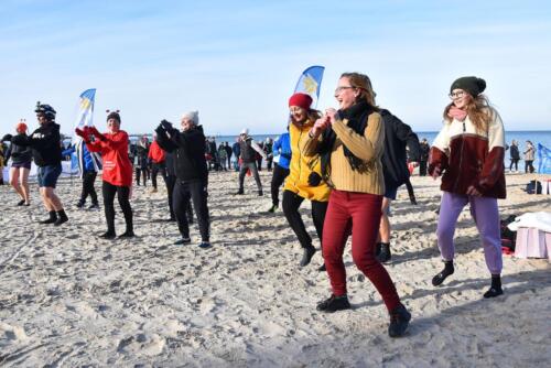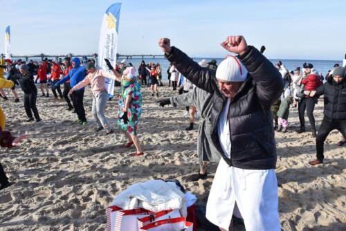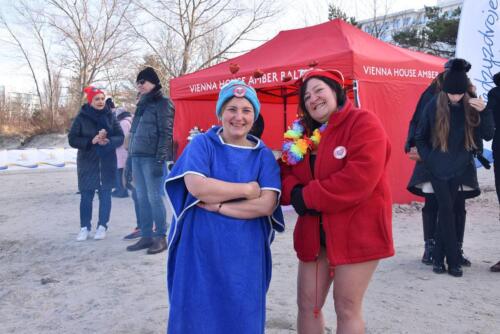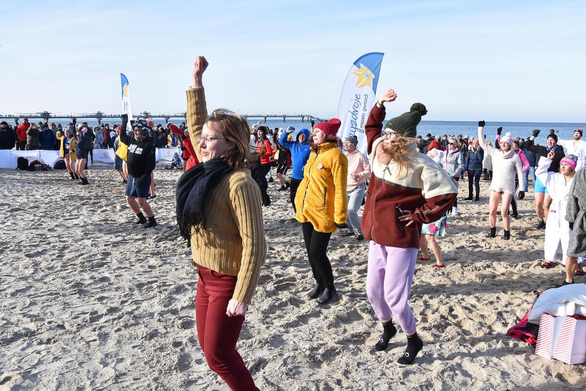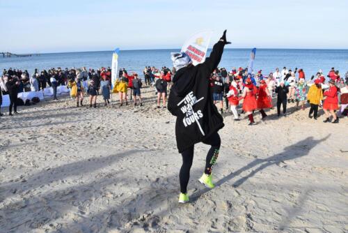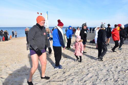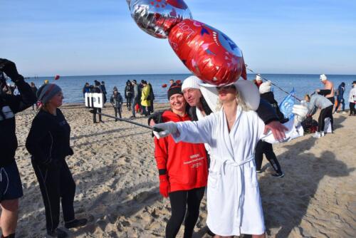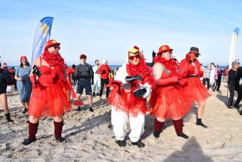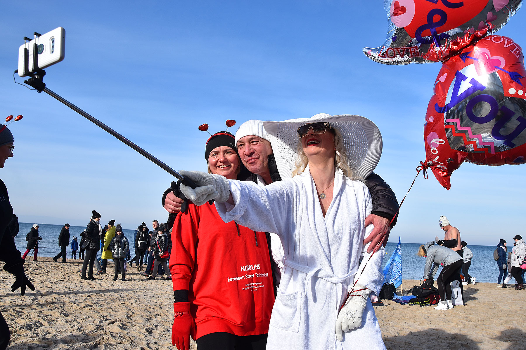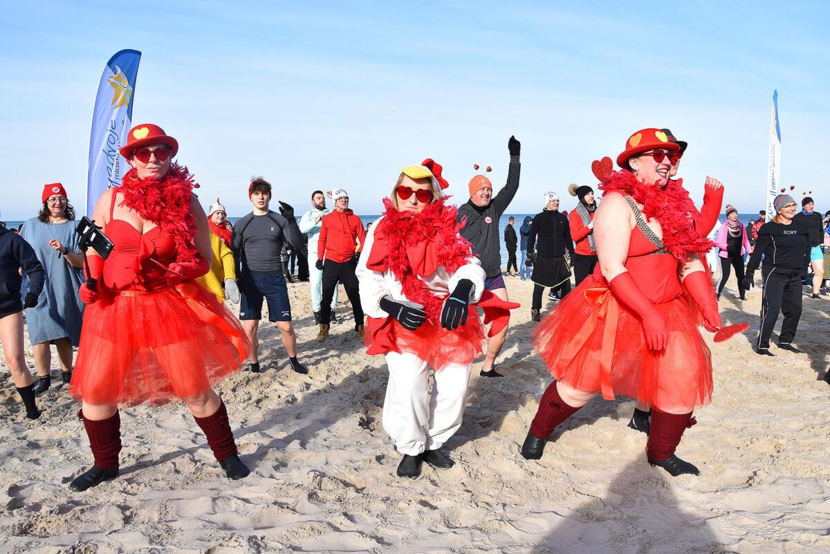 Przed wejściem do wody rozgrzewkę poprowadziła Alicja Taratajcio, licencjonowany instruktor zumby. Punktualnie w południe weszli do zimnego Bałtyku. Nad ich bezpieczeństwem czuwali ratownicy WOPR. Podczas imprezy wybrany został najlepszy strój walentynkowy.