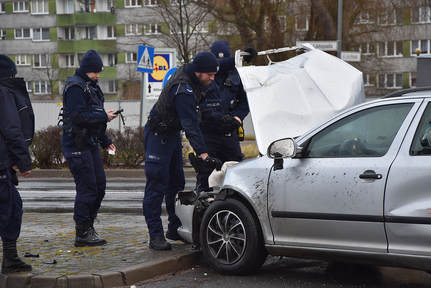 Policjanci ustalają szczegóły zdarzenia.