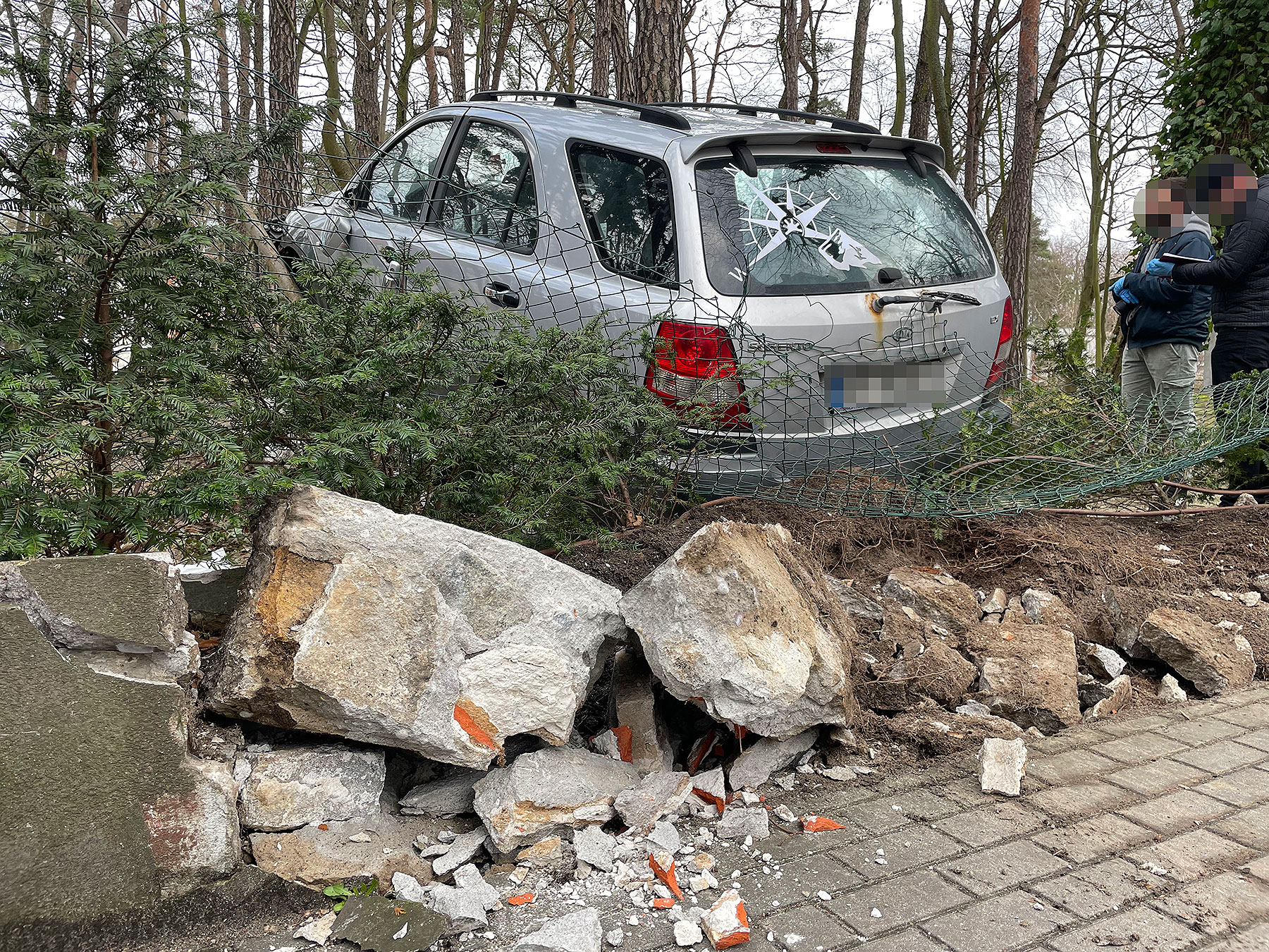 Do zdarzenia doszło w środę nad ranem. Kierujący uszkodził mur oporowy i ogrodzenie. Na miejsce wezwano policję, która ustala tożsamość kierowcy i okoliczności zdarzenia.