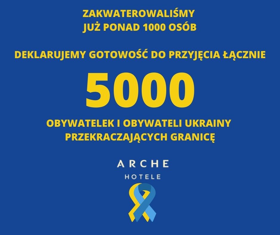 Polska sieć hotelowa Arche uruchomiła sztab pomocy dla uchodźców z objętej stanem wojennym Ukrainy. W 16 obiektach sieci oraz w Siedliskach Arche przygotowywane są miejsca dla poszukujących zakwaterowania. O pomoc mogą starać się firmy, które poszukują miejsca dla rodzin pracowników, sztaby kryzysowe uruchomione w Urzędach Wojewódzkich, fundacje i stowarzyszenia niosące pomoc potrzebującym.