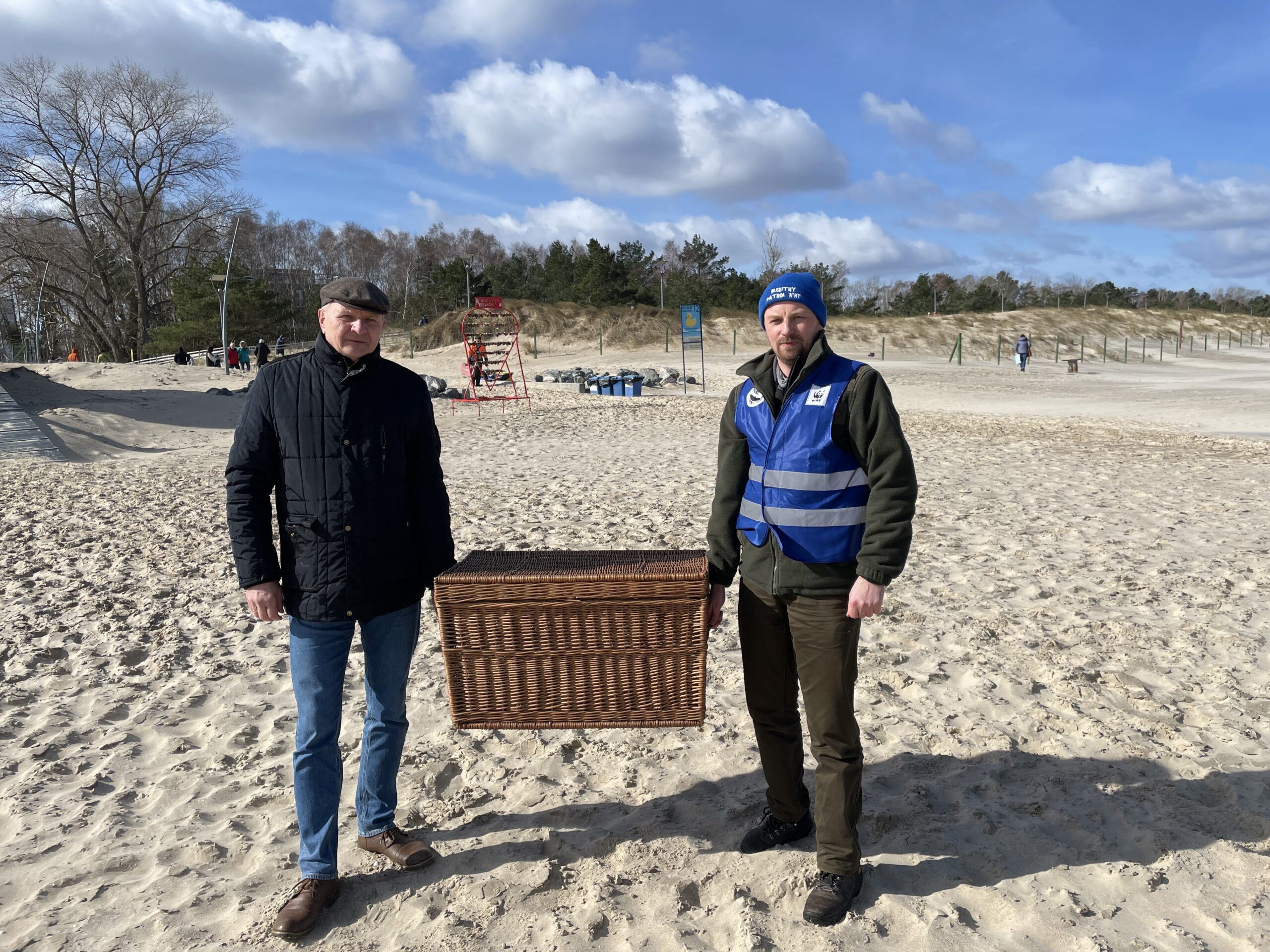 Kilka minut po godzinie 10 na świnoujskiej plaży pojawił się Konrad Wrzecionkowski z Błękitnego Patrolu WWF.