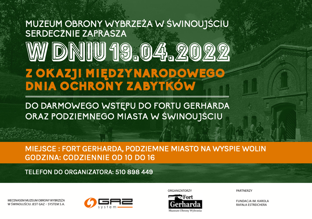 Fort Gerharda wraz z Podziemnym Miastem zapraszają na darmowy wstęp przez cały dzień w godzinach otwarcia obiektów z okazji Międzynarodowego Dnia Ochrony Zabytków