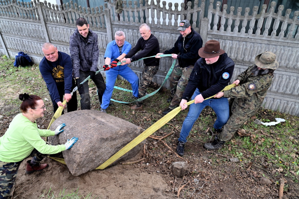 „Znaleźliśmy dziś granitowe zwieńczenie pomnika o wadze trzech ton. W kamieniu wykuty jest miecz i inskrypcja +Unsern Helden+, czyli +Naszym bohaterom+ oraz daty 1914-1918” – powiedział PAP w sobotę koordynator do walki z przestępstwami przeciwko zabytkom szczecińskiej KWP kom. dr Marek Łuczak.