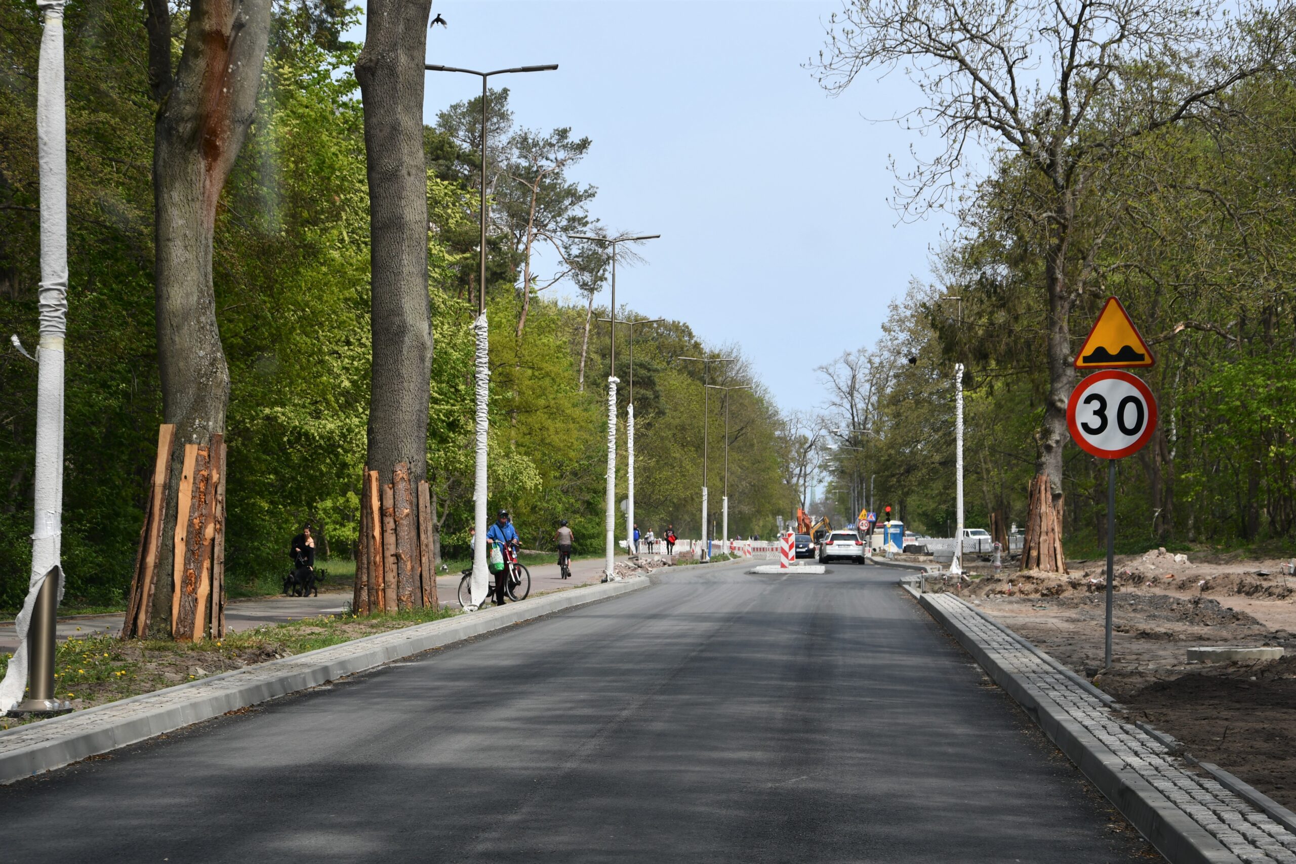 Przebudowa ulicy Grunwaldzkiej począwszy od granicy Świnoujście-Garz do skrzyżowania z ulicą 11 Listopada podzielona jest na etapy. Na pierwszym (od granicy) gotowe są oświetlenie i kanalizacja deszczowa, konstrukcja nawierzchni. Wykonawca ma jeszcze do położenia ostatnią warstwę ścieralną asfaltu na jezdni i dokończyć nawierzchnię chodników oraz zjazdy. Termin zakończenia to koniec czerwca 2022.