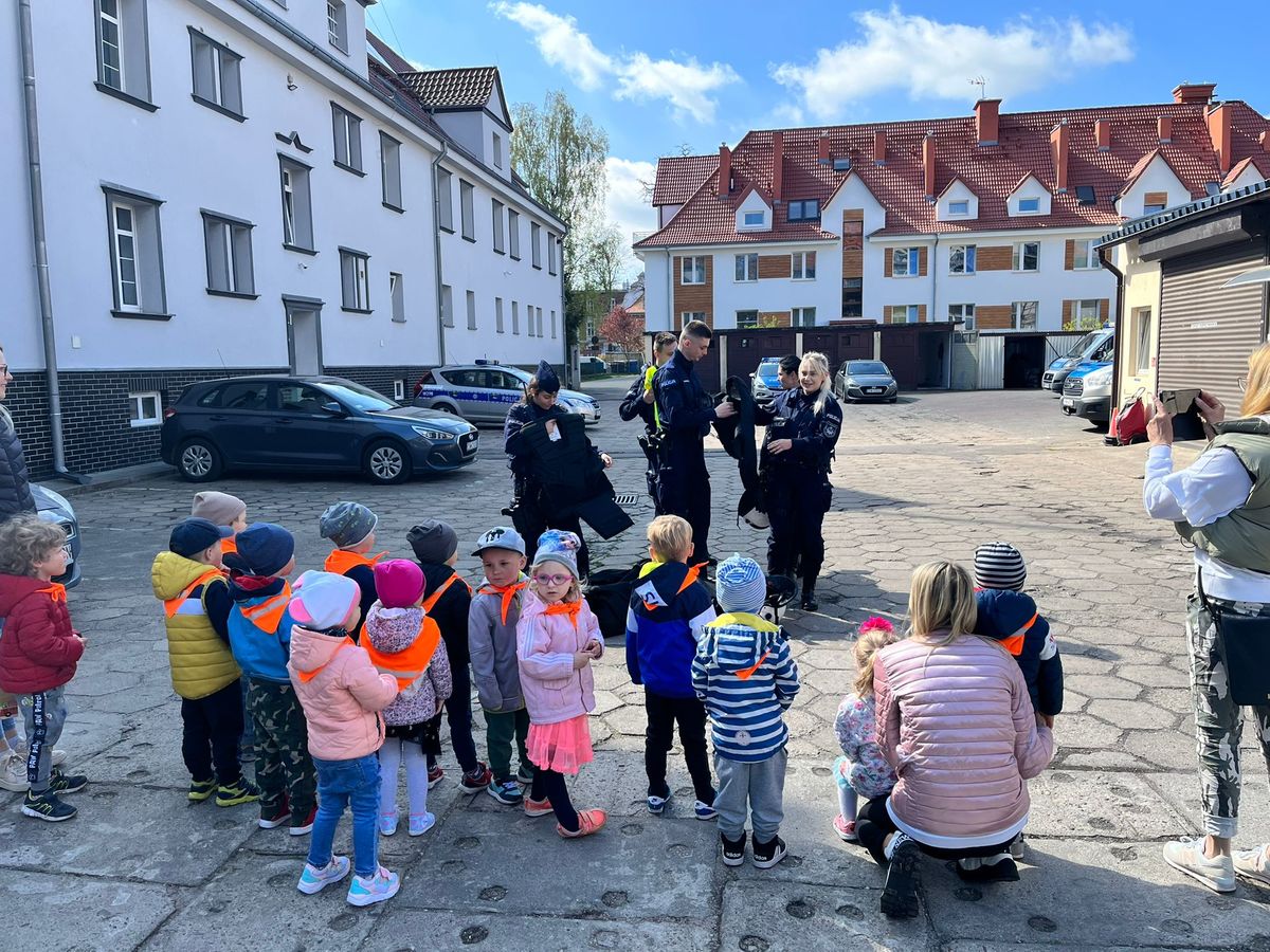 Spotkanie zakończyło się rozdaniem przez policjanta odblaskowych opasek, które pomogą zapewnić najmłodszym odpowiednią widoczność po zmroku.