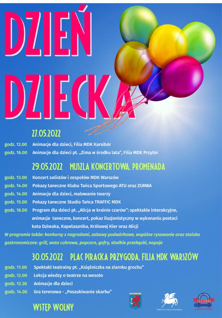 Poniżej publikujemy program imprez, które odbędą się z okazji Dnia Dziecka. Pierwsze już 27 maja 2022.