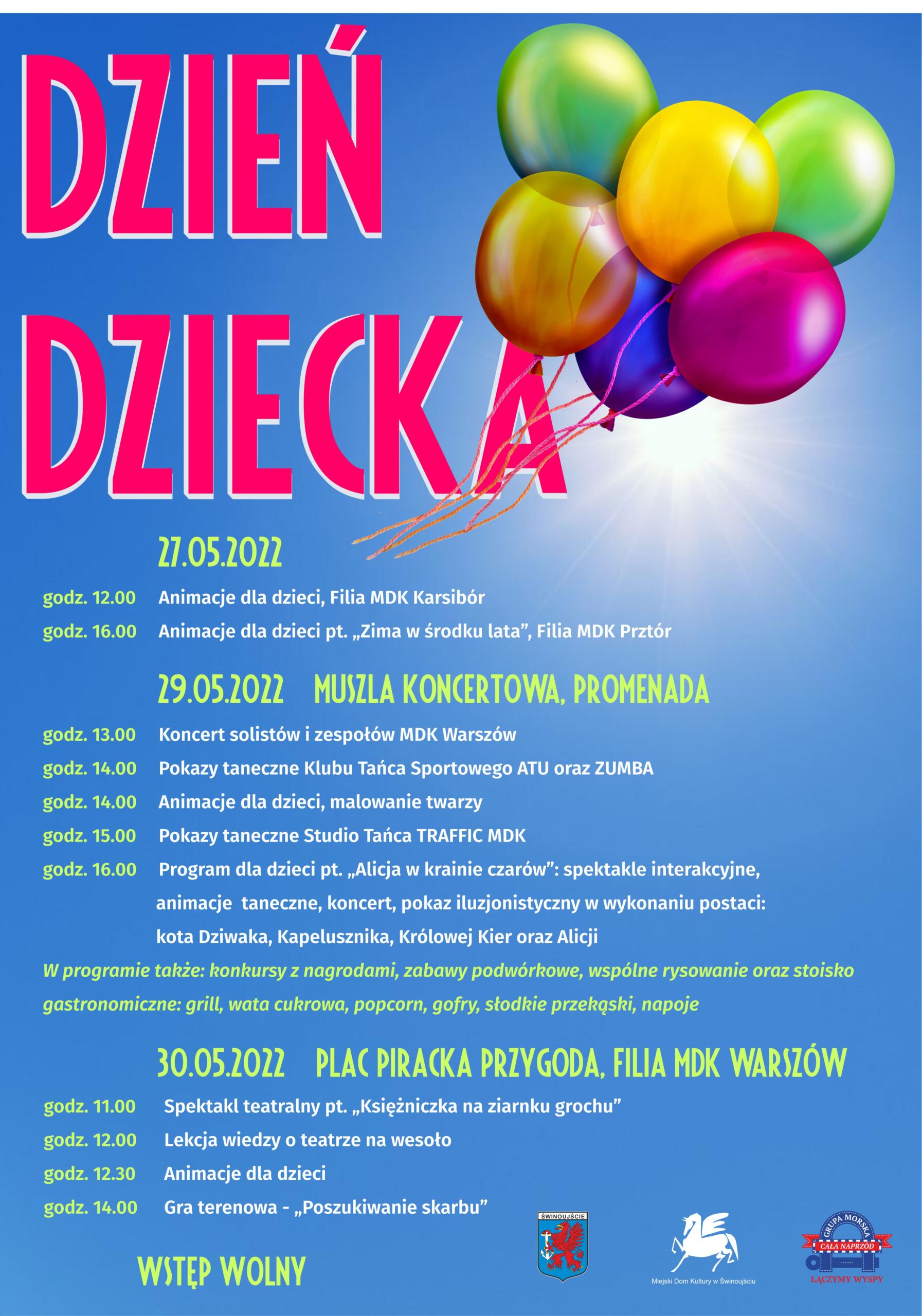 Програма до Дня Дитини представлена на інформаційному плакаті нижче. Щиросердечно запрошуємо усіх до спільного святкування, яке маємо приємність співорганізувати разом з Президентом м. Свіноуйсця та Міським Домом Культури.