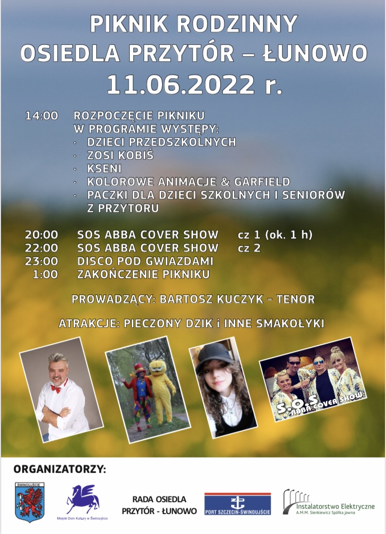 Jak zawsze nie zabraknie występów naszych lokalnych i bardzo utalentowanych artystów. Posłuchamy również znanych i cenionych coverów zespołu ABBA. Przygotowane są też specjalne animacje dla dzieci oraz paczki dla seniorów i najmłodszych mieszkańców osiedla Przytór-Łunowo. Uczestnicy pikniku będą mogli skosztować fantastycznych smakołyków, m. in. pieczonego dzika.