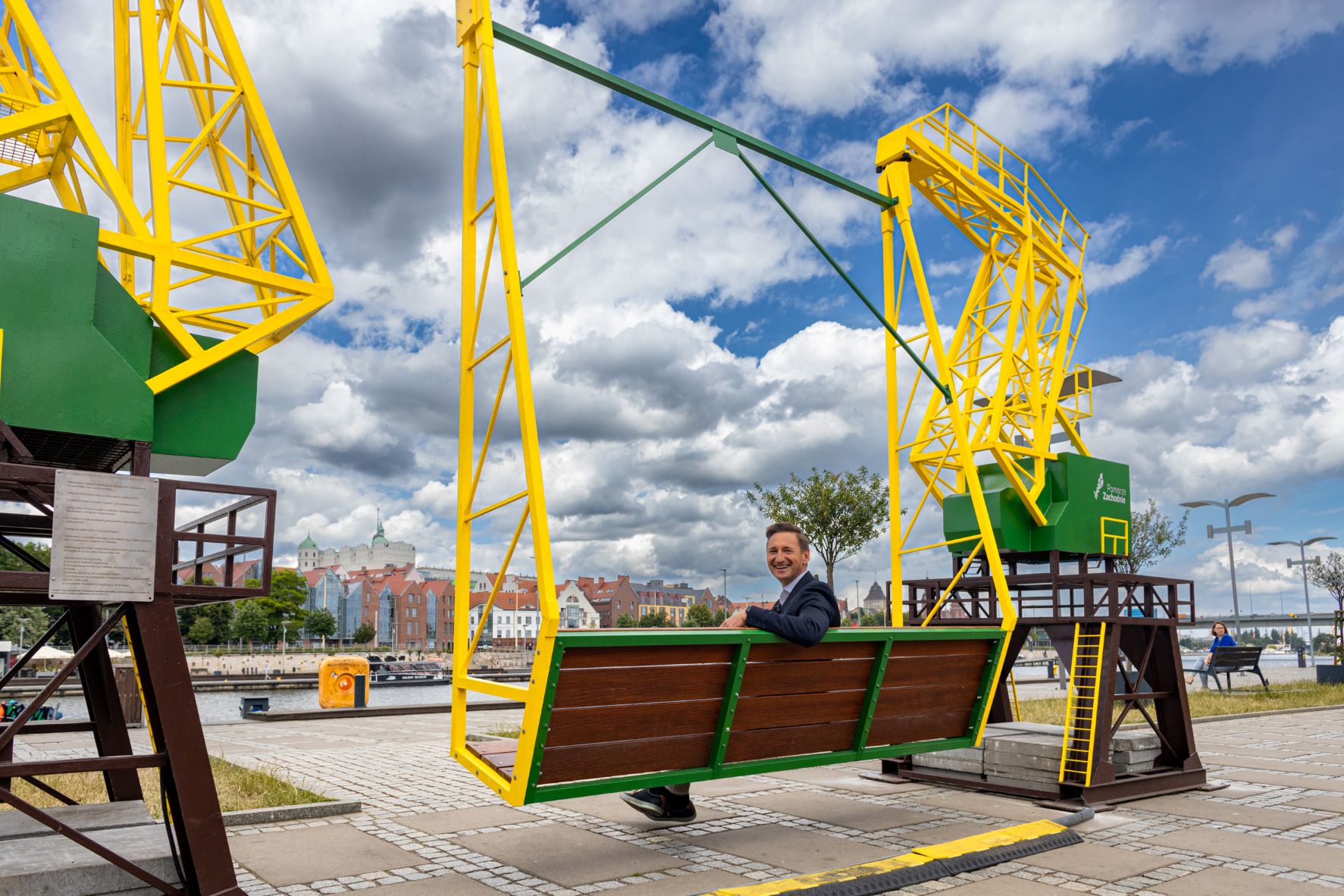 Huśtawka zawieszona na replikach słynnych (odrestaurowanych w 2017 r.) portowych dźwigów stojących nad Odrą w niebanalny sposób reklamuje Pomorze Zachodnie. Huśtając się, można poczuć klimat radosnego, przyjaznego regionu, zapraszającego do nadbałtyckich kurortów oraz żeglowania po zachodniopomorskich akwenach.