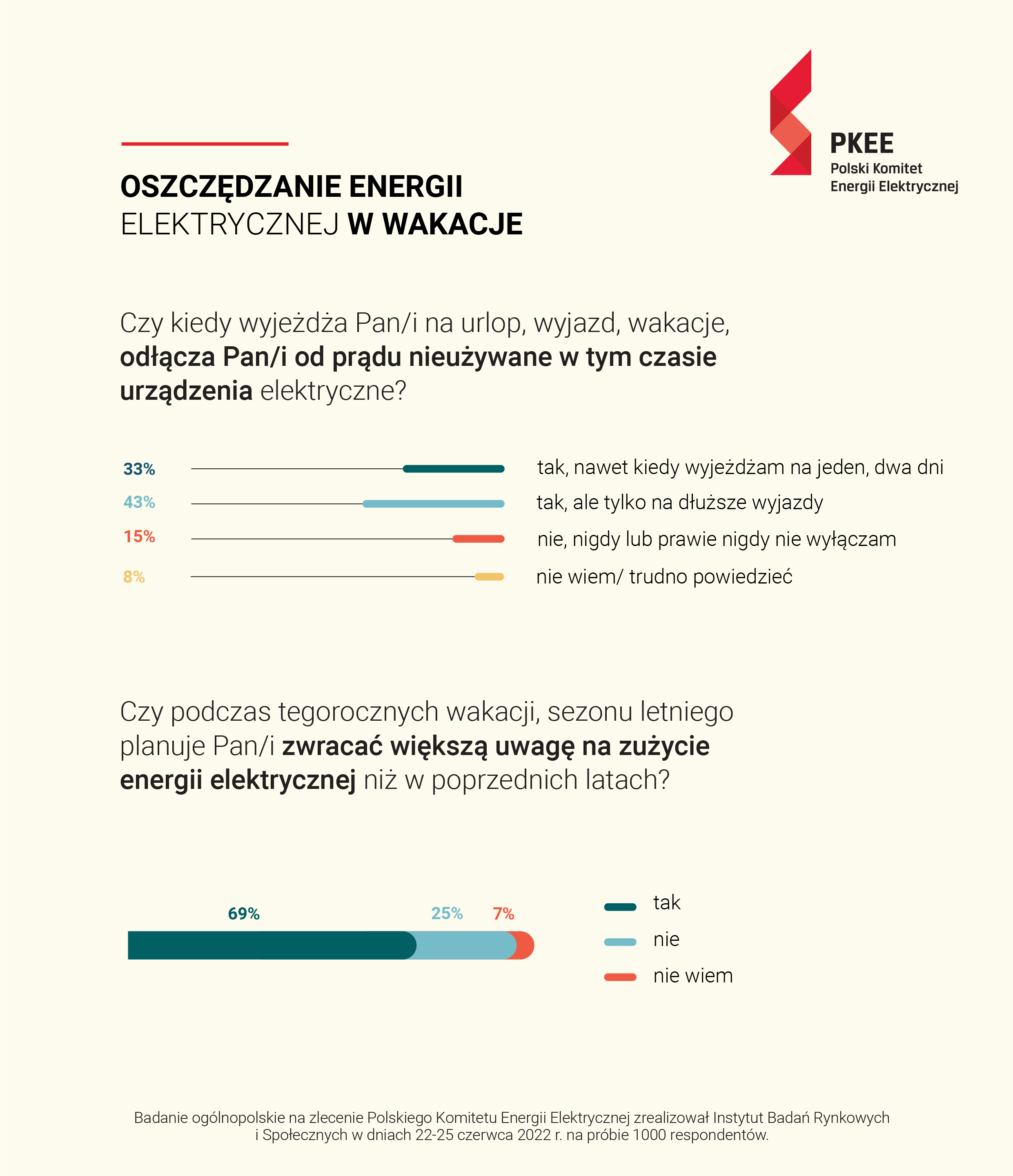 Badanie ogólnopolskie na zlecenie Polskiego Komitetu Energii Elektrycznej zrealizował Instytut Badań Rynkowych i Społecznych w dniach 22-25 czerwca 2022 r. na próbie 1000 respondentów.