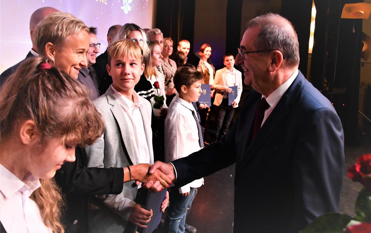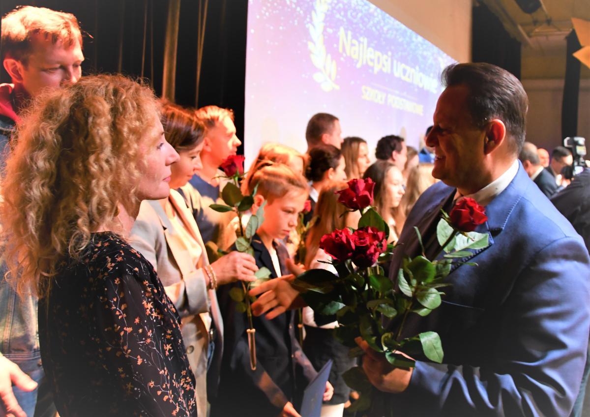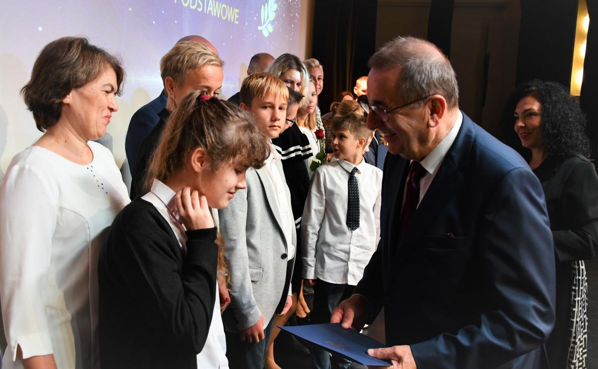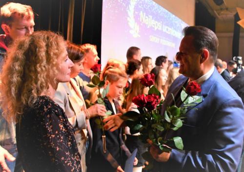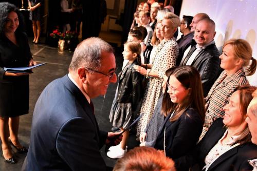 Podczas uroczystej gali w Miejskim Domu Kultury Prezydent Miasta złożył gratulacje dla dyrektorów placówek wyróżnionych uczniów oraz nauczycielom, którzy przygotowywali uczniów do konkursów przedmiotowych: