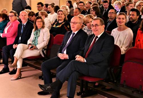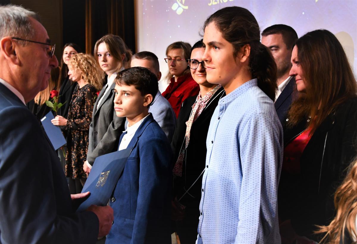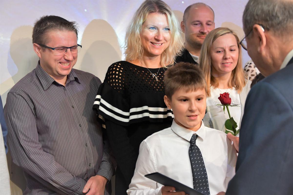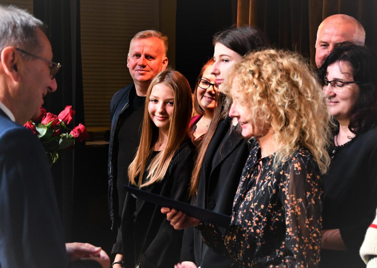 Podczas uroczystej gali w Miejskim Domu Kultury Prezydent Miasta złożył gratulacje dla dyrektorów placówek wyróżnionych uczniów oraz nauczycielom, którzy przygotowywali uczniów do konkursów przedmiotowych: