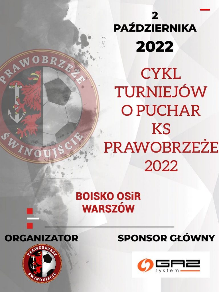 2 Października 2022 roku, w niedzielę, odbędzie się kolejny turniej pn. „Cykl turniejów o puchar KS Prawobrzeże Świnoujście 2022” pod patronatem Sponsora Głównego: Operatora Gazociągów Przesyłowych GAZ-SYSTEM S.A.