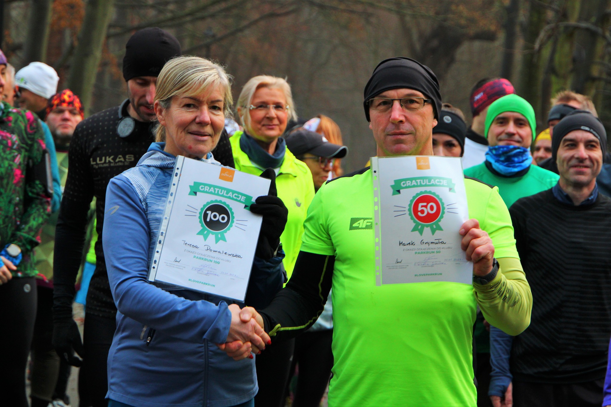 Do grona klubu 100. parkrunów dołączyła Teresa Domalewska, natomiast Marek Grymuła do klubu 50. parkrunów, wobec tego faktu zostały im dzisiaj wręczone dyplomy.