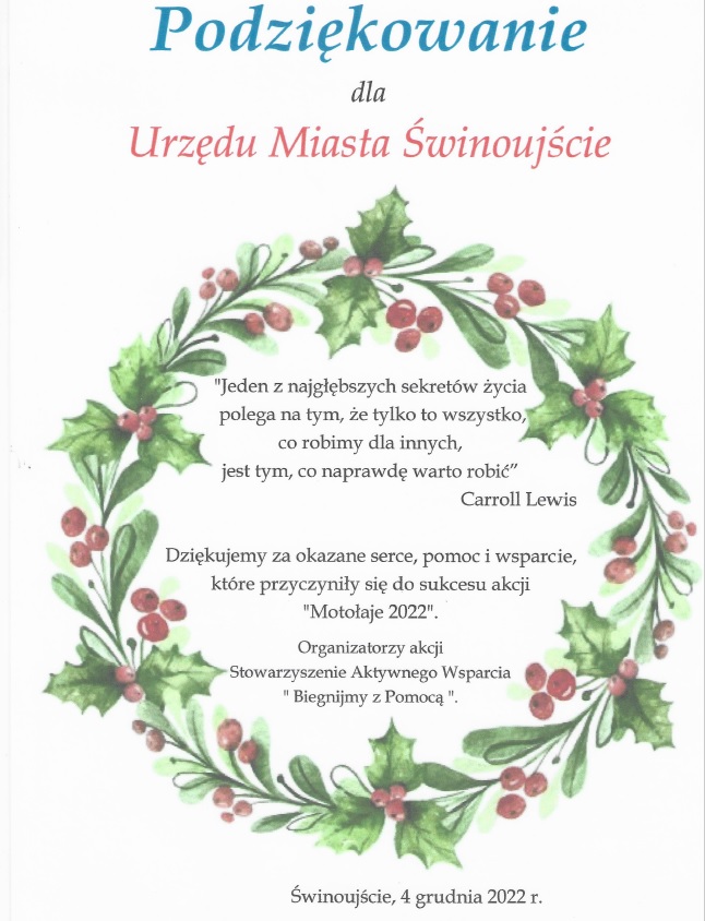 W ubiegłym roku Świnoujście wspierało akcję finansowo, a dziś miasto otrzymało podziękowania od Stowarzyszenia Aktywnego Wsparcia „Biegnij z pomocą”.
