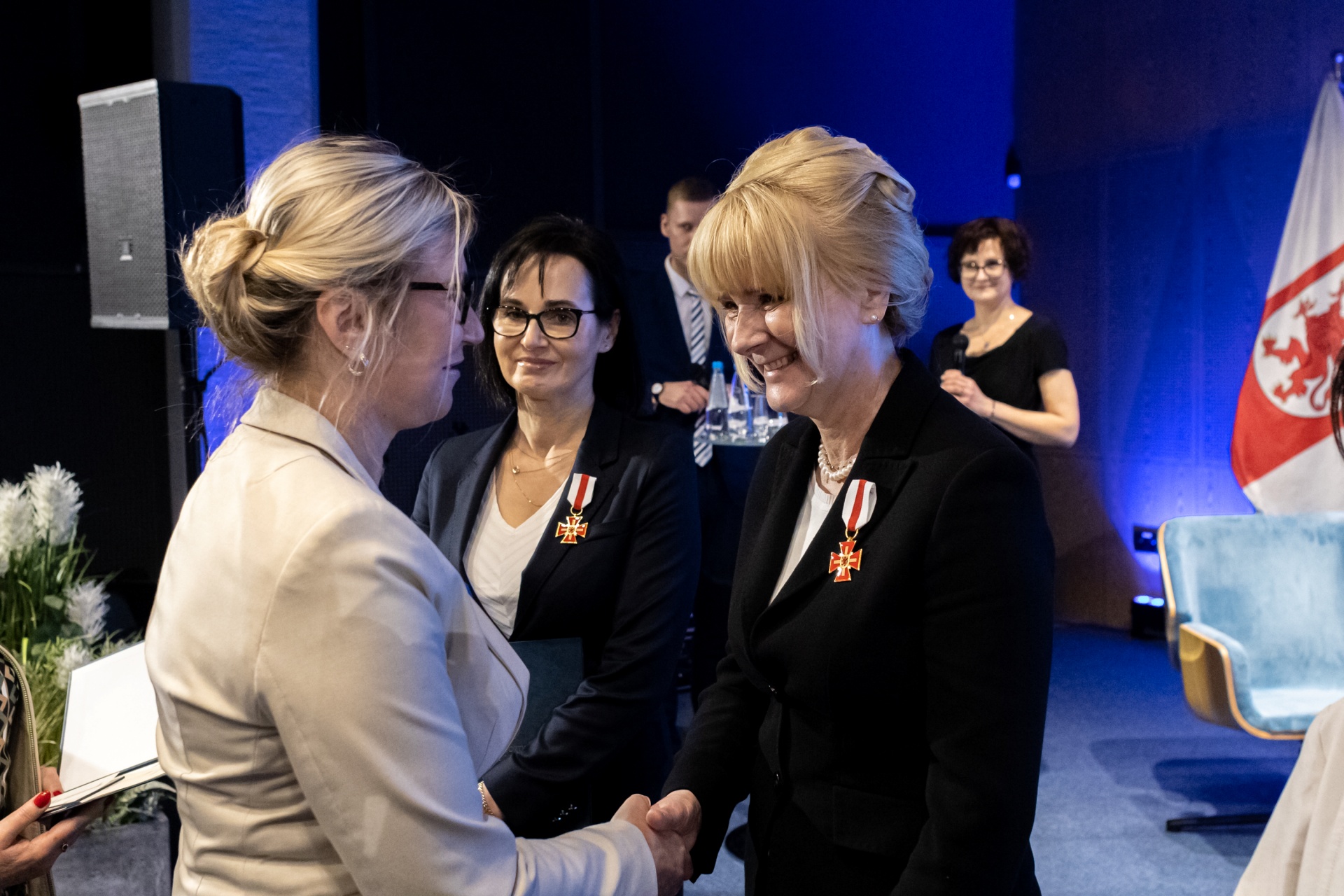 Przedstawiciele szpitalnego personelu zostali również odznaczeni Złotymi i Srebrnymi Honorowymi Odznakami Gryfa Zachodniopomorskiego, które nadawane są osobom zasłużonym dla rozwoju regionu. Dekoracji dokonały Anna Bańkowska, członkini Zarządu Województwa i Teresa Kalina, wiceprzewodnicząca sejmiku województwa zachodniopomorskiego.