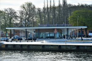 Poczekalnia wielkości kiosku ruchu, bez toalet. Ładne, ale zupełnie niefunkcjonalne. Gdyby pomieszczenie znajdowało się pod całym dachem, to było by OK, a tak 90% pasażerów będzie marzło na zewnątrz. W końcu tam zawsze wieje od wody. No i jakość wykonania zostawia wiele do życzenia. Za 3 lata to będzie ruina.