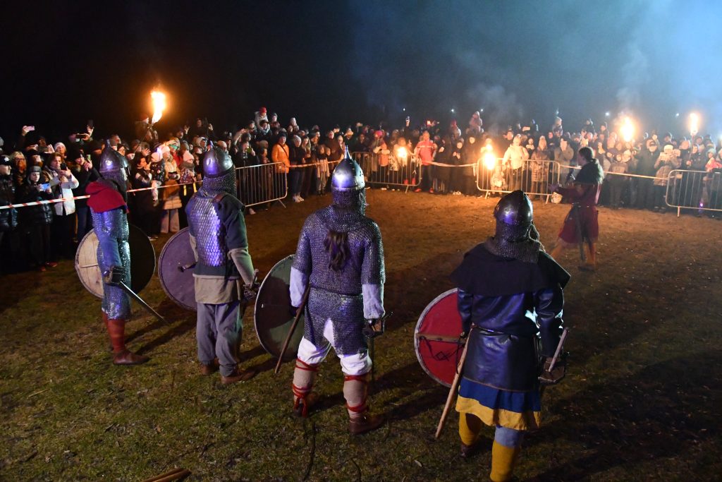 Wraz z zapadnięciem zmroku wydarzenie nabrało jeszcze bardziej spektakularnego charakteru. Przy świetle płonących ognisk odbyły się pokazy walk wojów, a przestrzeń wypełniła muzyka inspirowana dawnymi słowiańskimi brzmieniami.