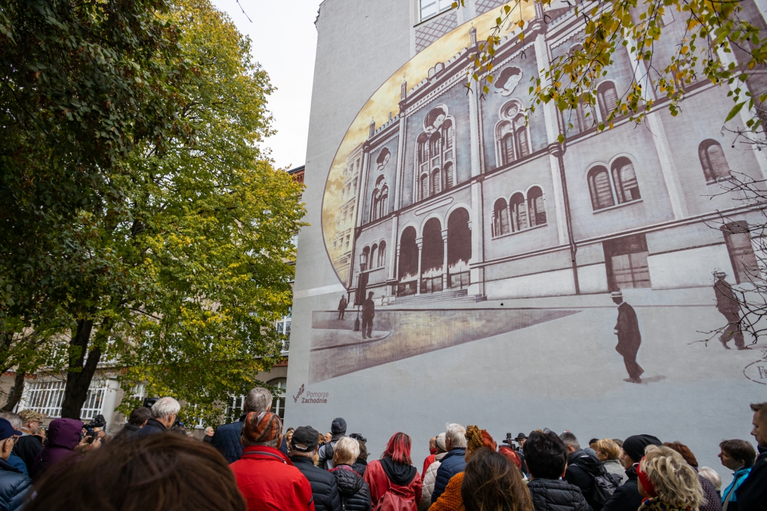 Foto: Mural-Książnica 2021 (archiwum). Towarzystwa Społeczno-Kulturalnego Żydów w Polsce w ubiegłym roku dzięki dotacji przygotowało Mural Pamięci na ścianie elewacji Książnicy Pomorskiej w Szczecinie. Mural zaprojektował i wykonał Piotr Pauk znany jako LUMP.