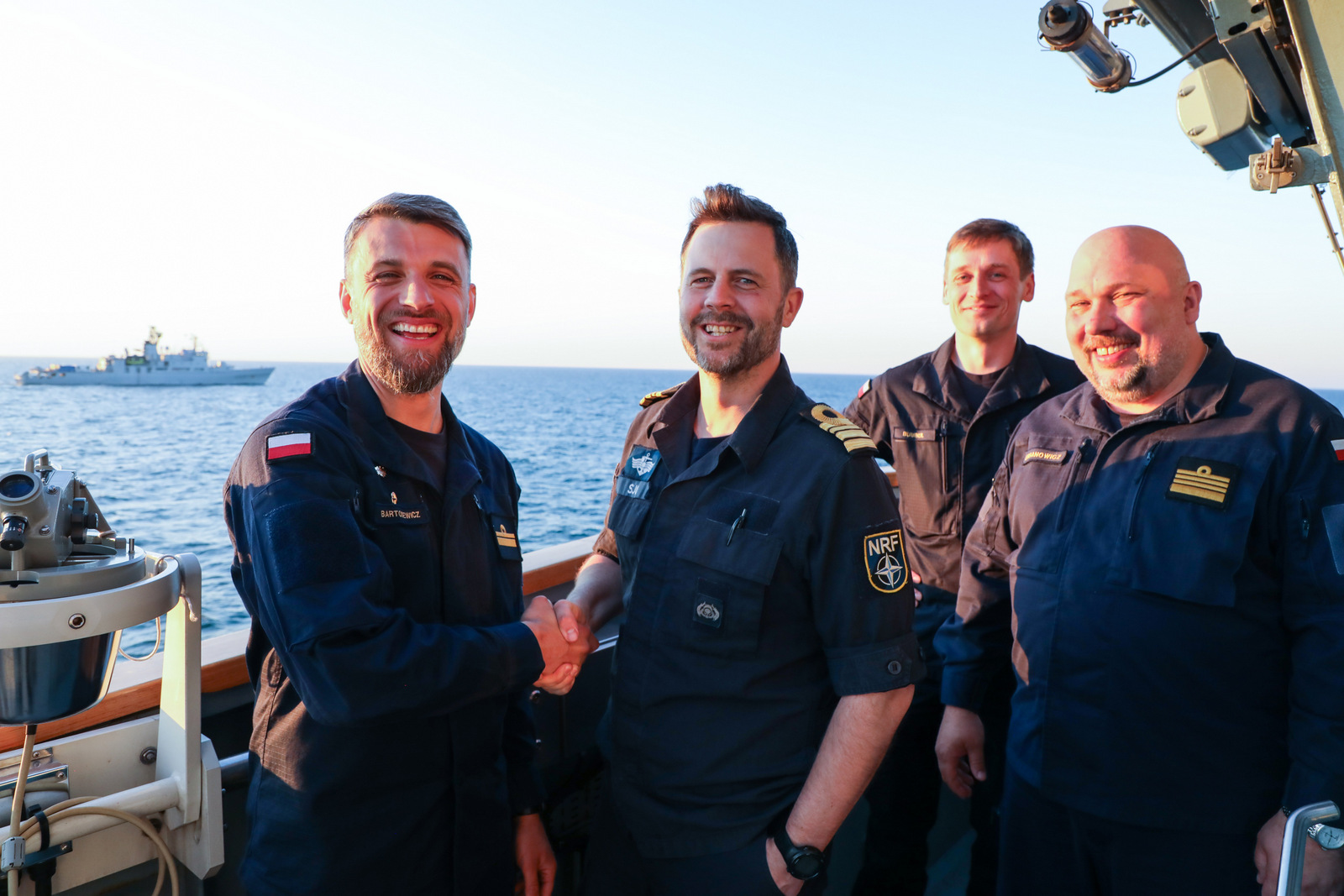 W ramach działań prowadzonych przez siły komponentu morskiego przeprowadzono także manewry ze Stałym Zespołem Sił Obrony Przeciwminowej NATO Grupa 1 (SNMCMG1). Zespół przebywał z roboczą wizytą w Szczecinie skąd poprzez port wojenny w Świnoujściu wyszedł na morze realizując rutynowe zadania przypisane stałym zespołom okrętów NATO. Wyjście z bazy morskiej w Świnoujściu zbiegło się z obecnością w rejonie sił komponentu morskiego ćwiczenia Anakonda-23 co pozwoliło dowódcy polskiego zespołu zadaniowego zorganizować wspólne manewry z siłami sojuszniczymi. Wspólne manewry to sprawdzian elastyczności sztabu komponentu morskiego oraz sprawności planowania działań w domenie morskiej w warunkach stale zmieniającej się sytuacji operacyjnej. Umiejętność integracji oraz wykorzystywania zaistniałych szans stanowi jedną z istotniejszych zdolności niezbędnych do efektywnego wykorzystania sił morskich. Tym samym tworzący sztab zespołu zadaniowego oficerowie z Centrum Operacji Morskich – Dowództwa Komponentu Morskiego, 8 Flotylli Obrony Wybrzeża oraz załogi okrętów pod biało czerwoną banderą po raz kolejny, po manewrach Solidarna Belona-21 czy Rekin-22, potwierdzili swoje umiejętności do współpracy i integracji działań z sojuszniczymi siłami morskimi na Bałtyku.