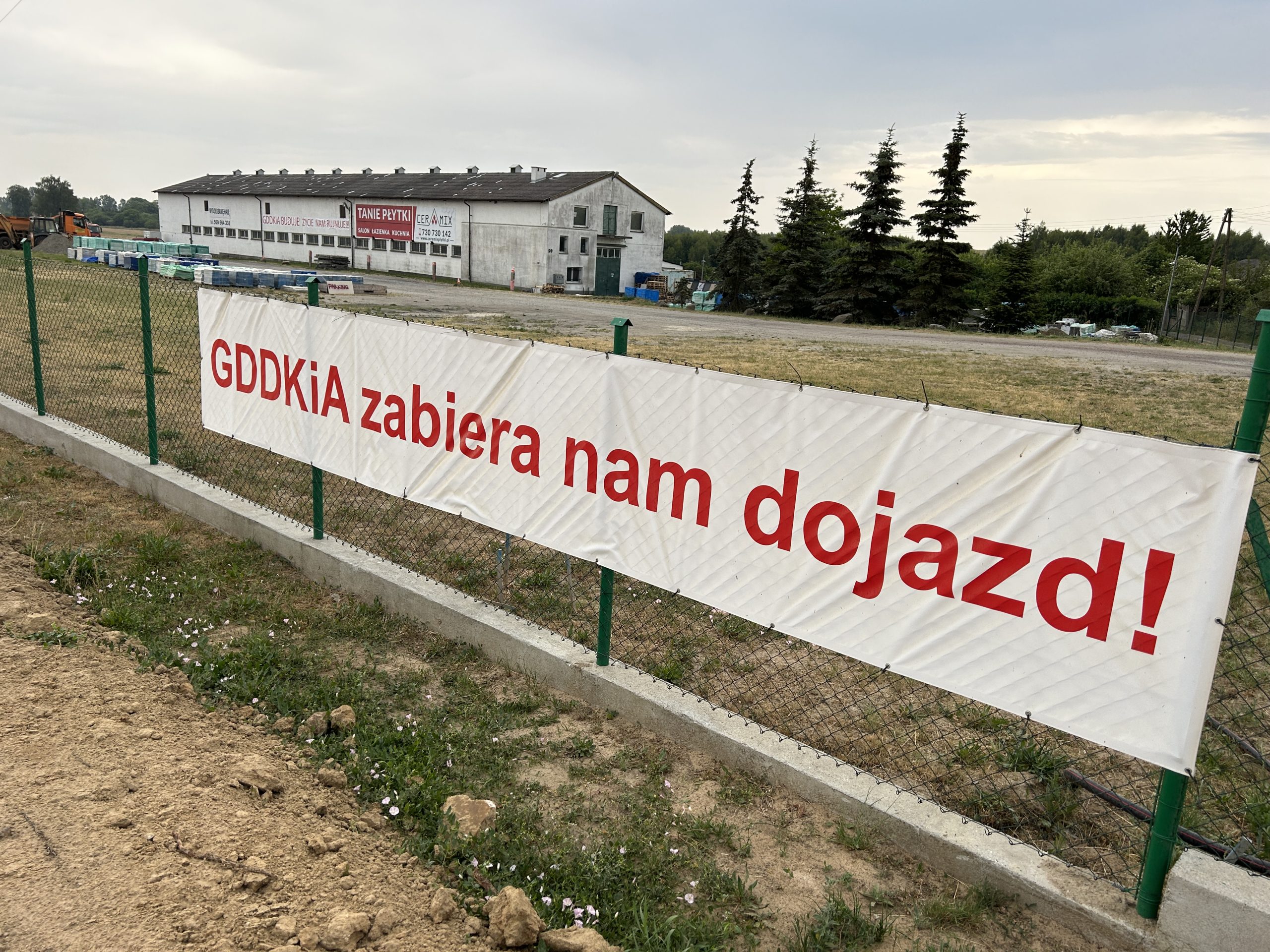 Właściciele firm powiesili na ogrodzeniu dwa banery na których napisali: GDDKiA zabiera nam dojazd. Z czego dalej żyć?