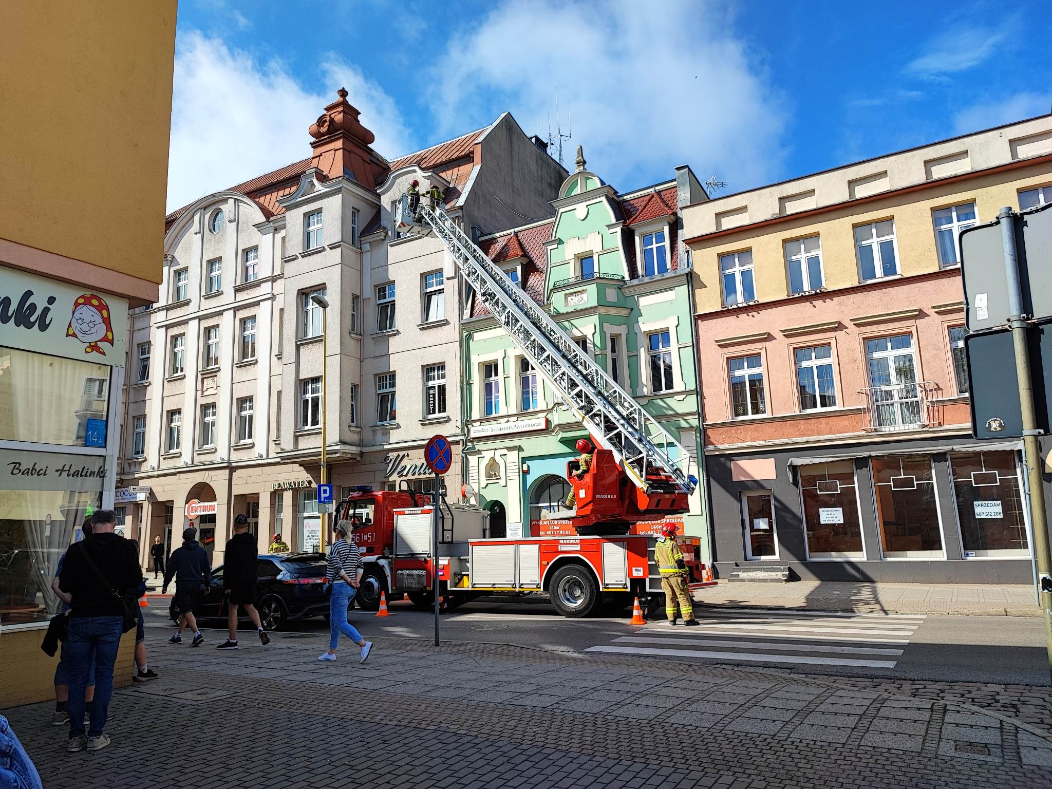 Jeden z ptaków padł w tarapaty na dachu budynku przy ulicy Armii Krajowej 12 w Świnoujściu.  Zrozpaczona matka tak długo skrzeczała, że okoliczni mieszkańcy postanowili wezwać na pomoc strażaków.
