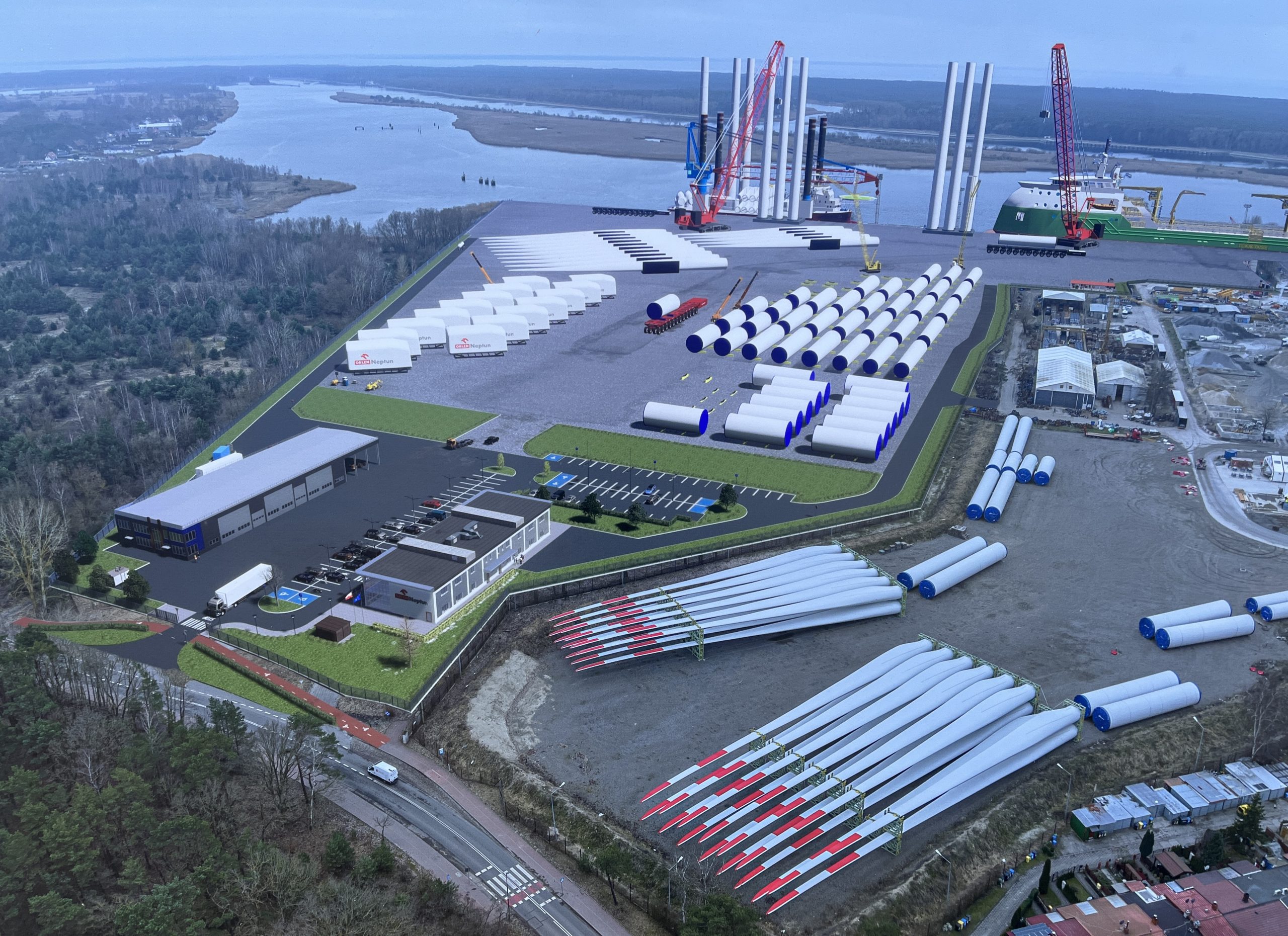 2. Projekt pn. „Budowa i wyposażenie terminalu instalacyjnego w Świnoujściu”, polegający na budowie infrastruktury nabrzeżowej terminalu do montażu, magazynowania i przeładunku komponentów do budowy i instalacji morskich farm wiatrowych (MFW). Podmiotem odpowiedzialnym za realizację inwestycji jest operator terminalu morskich farm wiatrowych – Orlen Neptun II S.A.