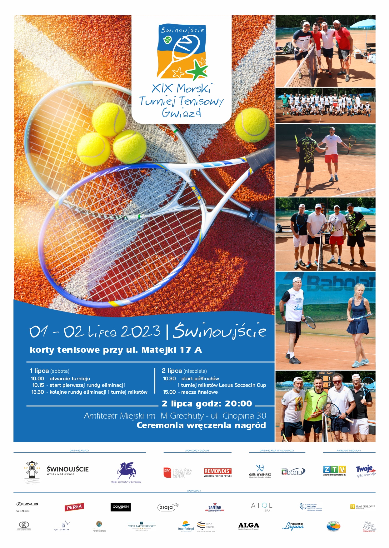 XIX Morski Turniej Tenisowy Gwiazd w Świnoujściu pod patronatem Prezydenta Miasta Janusza Żmurkiewicza rozpoczyna się w sobotę 1 lipca o godz. 10.00 na kortach tenisowych przy ul. Matejki 17 A. Wezmą w nim udział m.in. Radek Bielecki, Tomasz Bednarek, Jan Englert, Tomasz Gęsikowski, Robert Janowski, Dariusz Kamys, Piotr Miazga, Paweł Orleański, Maurycy Polaski, Grzegorz Poloczek, Przemek Sadowski, Henryk Sawka, Tomasz Stockinger, Karol Strasburger oraz Przemek Sasza Żejmo.
