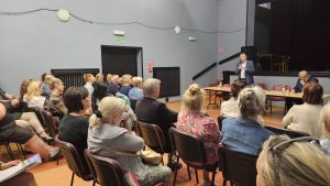 Dariusz Wieczorek na miejscu zapoznał się z pracami służb oraz obejrzał „ochronę” terminalu LNG, czyli m.in. sławetną taśmę rozlepioną między drzewami i bramki w lesie. Później spotkał z mieszkańcami w warszowskim MDK. Przy pełnej sali obiecywał pomoc.