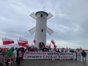 – Gdy przeczytaliśmy zmiany w rozporządzeniu pomyśleliśmy, że to jakiś ponury żart. Nadal nie ma dostępu do zabytków, dojazdu i dojścia do plaży na Warszowie. Nie ma też dostępu lądowego do Fortu Gerharda, latarni morskiej, falochronu centralnego, szlaku fortecznego, a nawet do bezpośredniego zjazdu z ul. Ku Morzu na szlak R10. Po deklaracji wicepremiera Jarosława Kaczyńskiego oczekiwaliśmy zdecydowanie więcej. A konkretnie otwarcia ul. Ku Morzu – mówią protestujący.