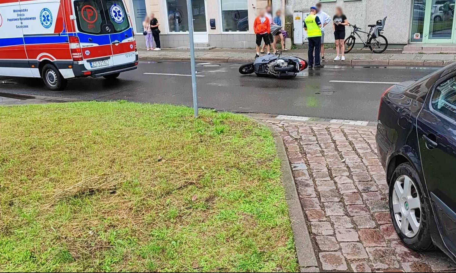 Do niebezpiecznego zdarzenia doszło na ulicy B. Chrobrego w Świnoujściu. Kierujący hondą wyjeżdżając z parkingu sklepu Biedronka, nie ustąpił pierwszeństwa jadącej na skuterze kobiecie. Wtedy doszło do zderzenia.