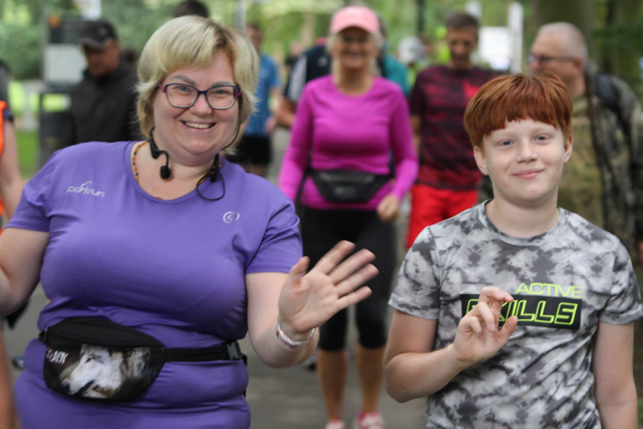 Po sygnale do startu koordynatora 304. parkrunu Arkadiusza Drzewieckiego biegacze, chodziarze oraz nasi czworonożni przyjaciele wypełnili alejki parku. Na trasie przy fontannach Agnieszka Drzewiecka wskazała drogę, potem na wysokości szpitala Aneta Burnat – Szczęsna, aby w okolicach kuźni nie pobłądzić Tadeusz Olszyk naprowadzał uczestników parkrunu w odpowiednią dróżkę.
