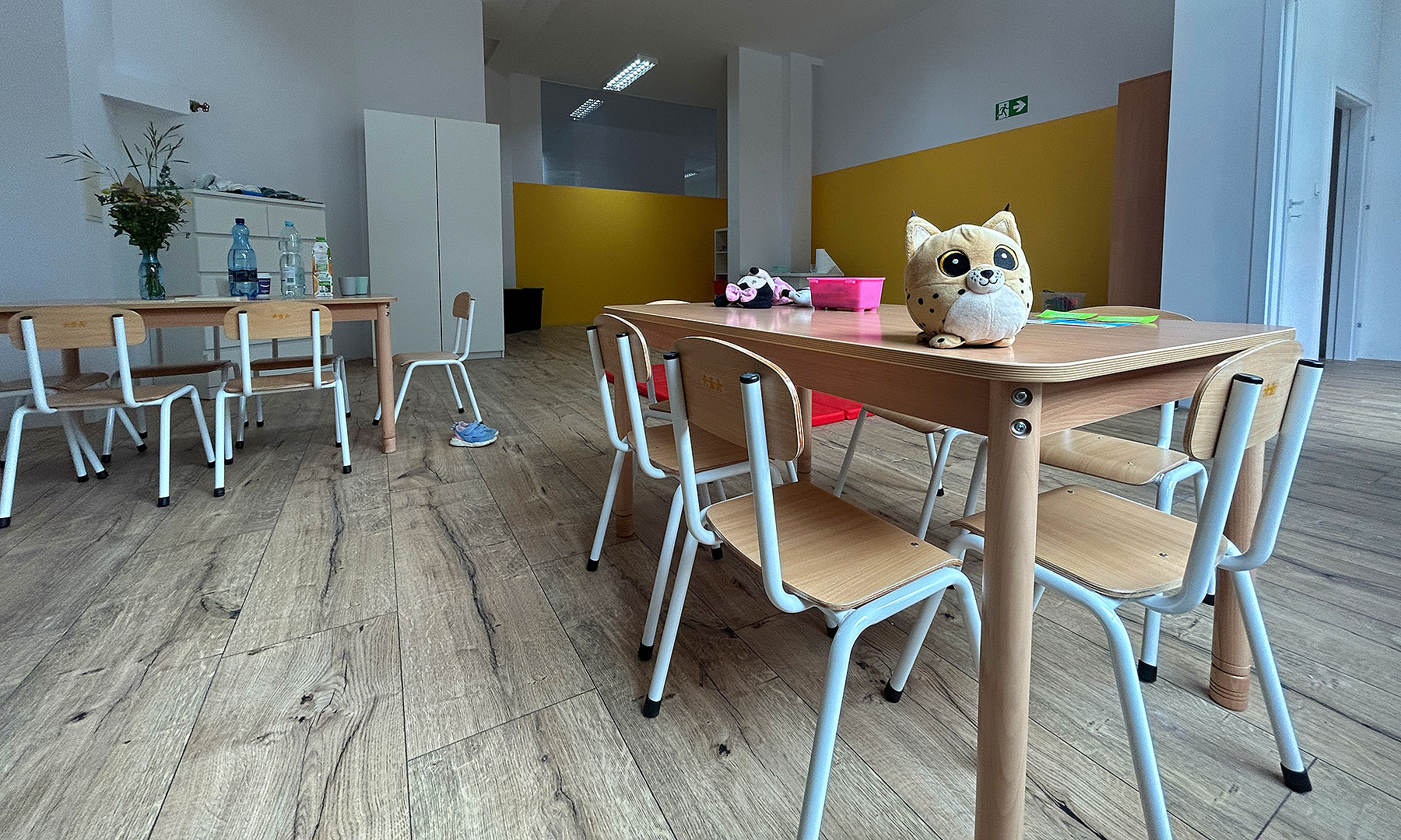 Przedszkole jest dostosowane do dzieci i pozbawione niepotrzebnych bodźców. Wewnątrz są stonowane kolory, meble niskie, a zabawki odpowiednio wybrane.