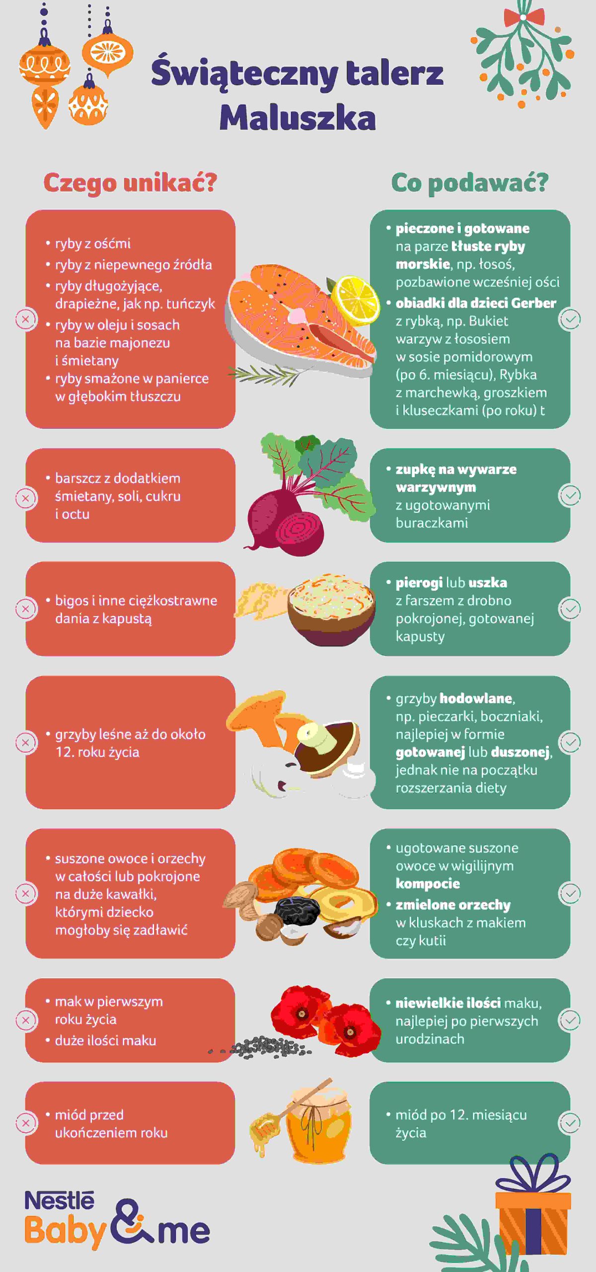 Boże Narodzenie to czas, kiedy nasz jadłospis wygląda zdecydowanie inaczej niż zwykle. Które potrawy można podać maluszkom, a na które lepiej uważać, radzi Ewelina Poźniak,dietetyczka, specjalistka ds. żywienia niemowląt i małych dzieci, ekspertka programu edukacyjnego dla rodziców Nestlé Baby&me.