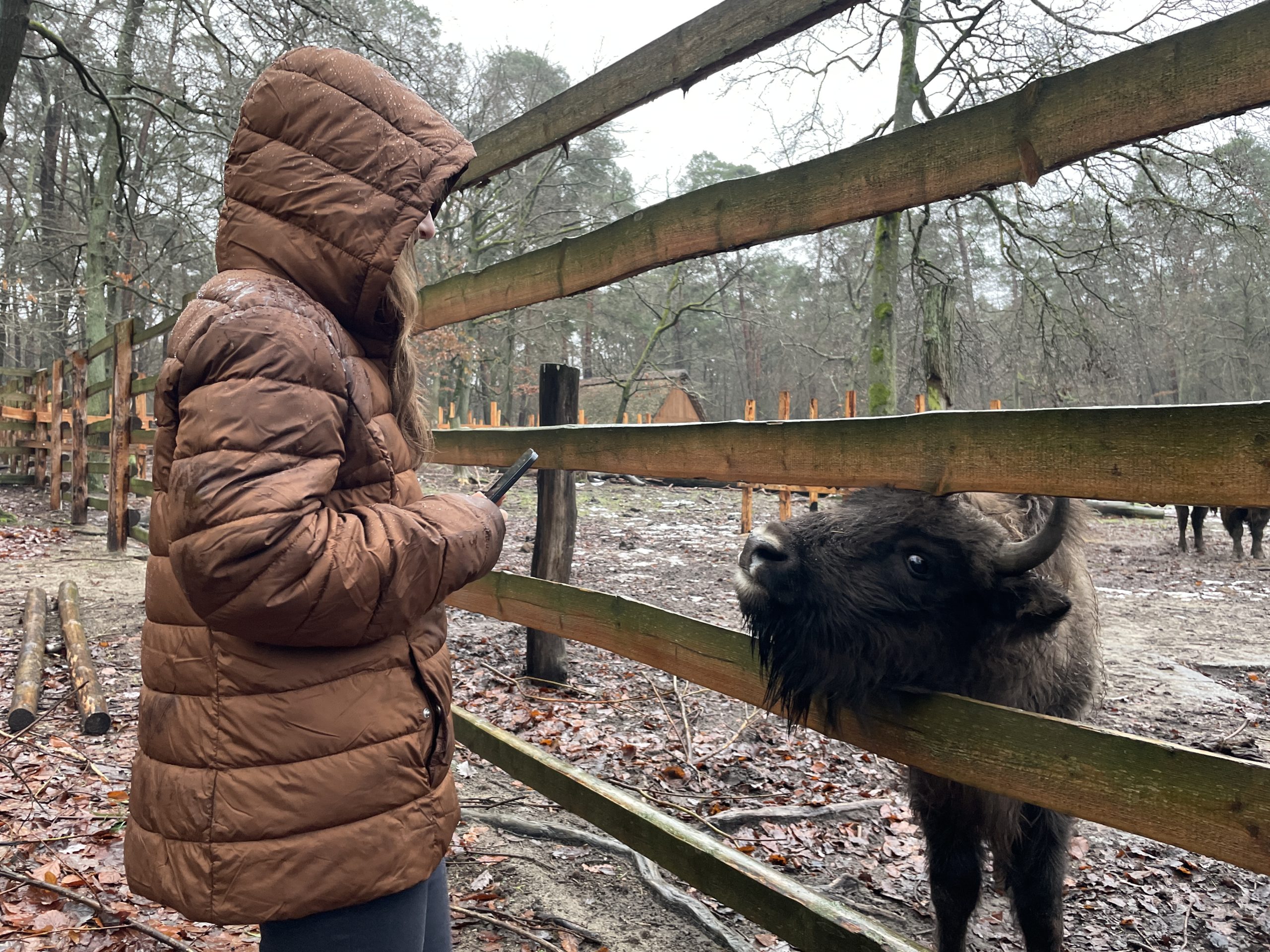Po części oficjalnej, Goście udali się z pracownikami Parku do Zagrody Pokazowej Żubrów, gdzie mimo niesprzyjających warunków atmosferycznych, a jednak w pogodnych nastrojach nastąpiło zapoznanie Ojca Chrzestnego z młodym Pogodniakiem. Z początku nieśmiałe Żubrzątko wraz z mamą, zachęcone dobrze znanymi twarzami Parkowych Hodowców – Pana Mariusza i Marcina, podeszło bliżej i pozwoliło na mini sesję zdjęciową 🙂 Przy okazji odwiedzin Goście zwiedzili również zaplecze Zagrody, poznali resztę stada i dowiedzieli się kilku ciekawostek z życia żubrów i pracy ich opiekunów.