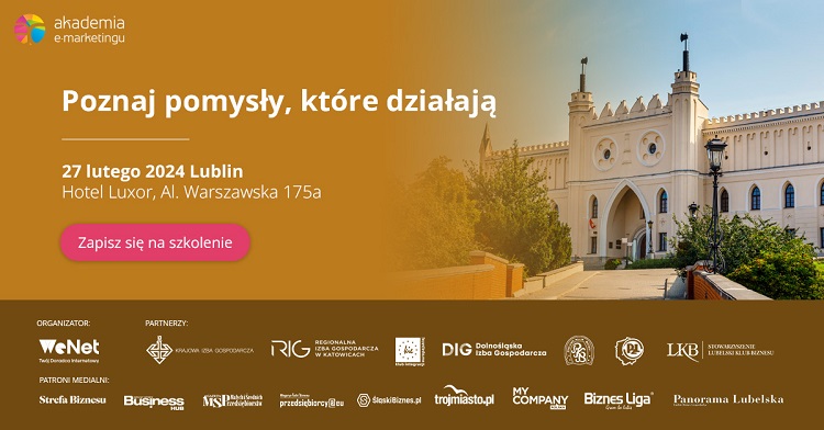 Już 27 lutego w Lublinie rozpocznie się 12. edycja Akademii e-marketingu adresowana do przedsiębiorców z sektora MSP. W tym roku eksperci odwiedzą 14 lokalizacji w największych miastach w Polsce. Akademia e-marketingu jest cyklem spotkań edukacyjnych poświęconych budowaniu strategii promocji firmy w Internecie. Uczestnicy, podczas spotkań z ekspertami, będą mogli zdobyć lub poszerzyć swoją wiedzę z zakresu marketingu online np. tworzenia strony WWW, działań SEO czy wykorzystania różnych narzędzi promocyjnych.