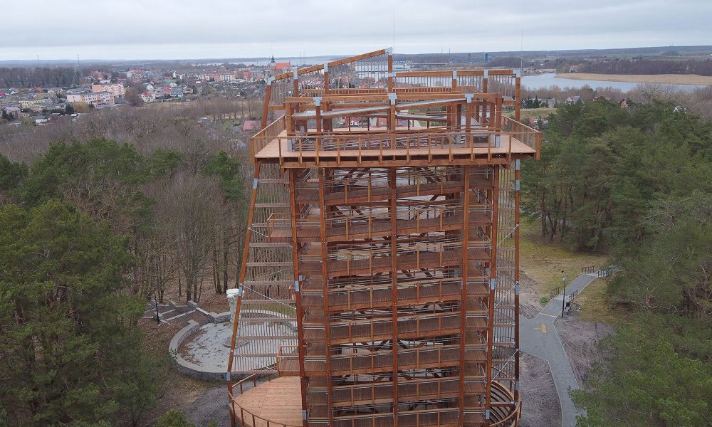 Zakończyła się budowa wieży widokowej w Wolinie. Drewniana konstrukcja powstała przy amfiteatrze, w sąsiedztwie parku informuje portal wWolinie.pl.