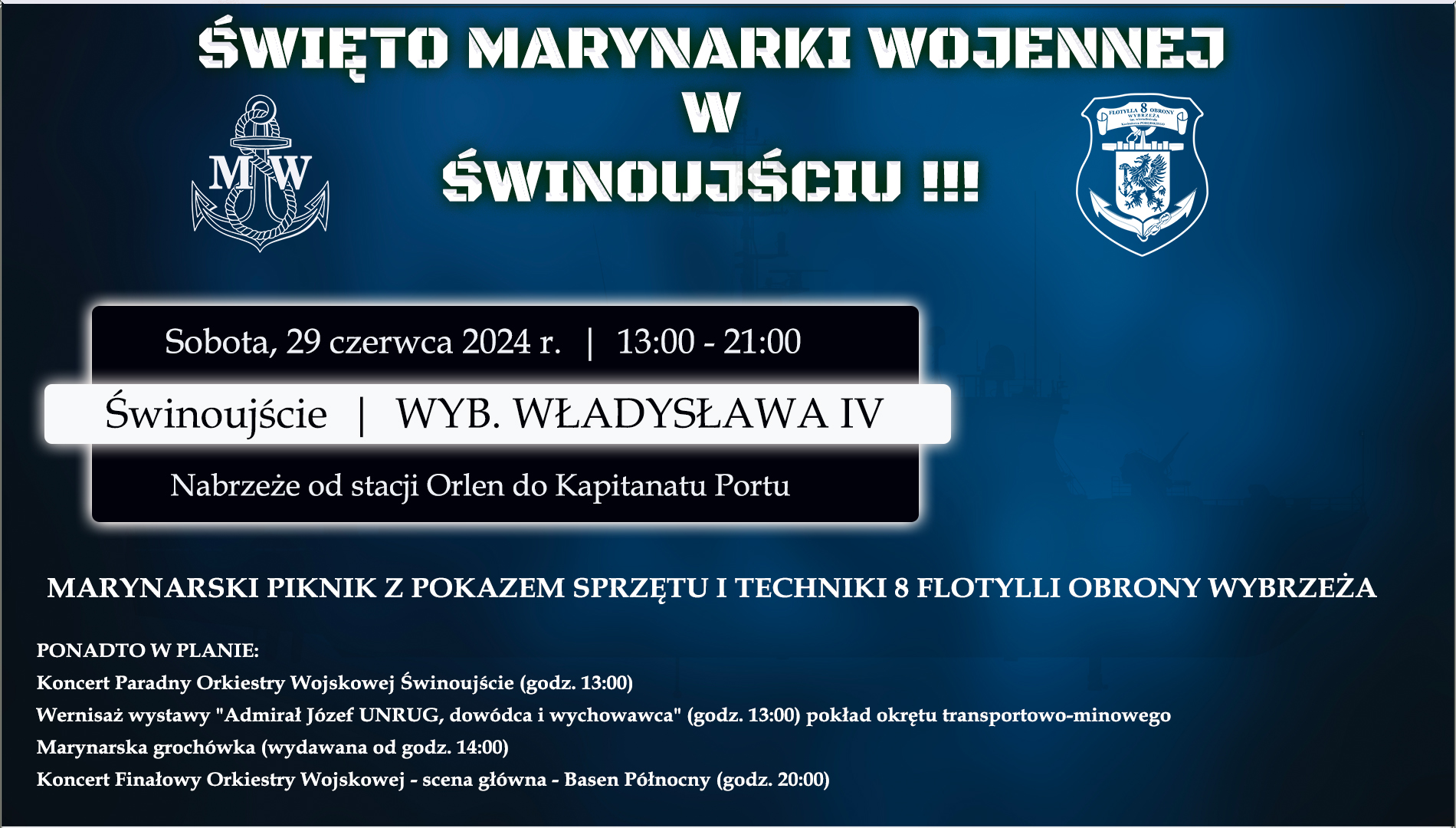 Z okazji Święta Marynarki Wojennej zaplanowano szereg uroczystości i pokazów dostępnych dla wszystkich mieszkańców oraz gości odwiedzających Świnoujście, by uświetnić ten dzień.