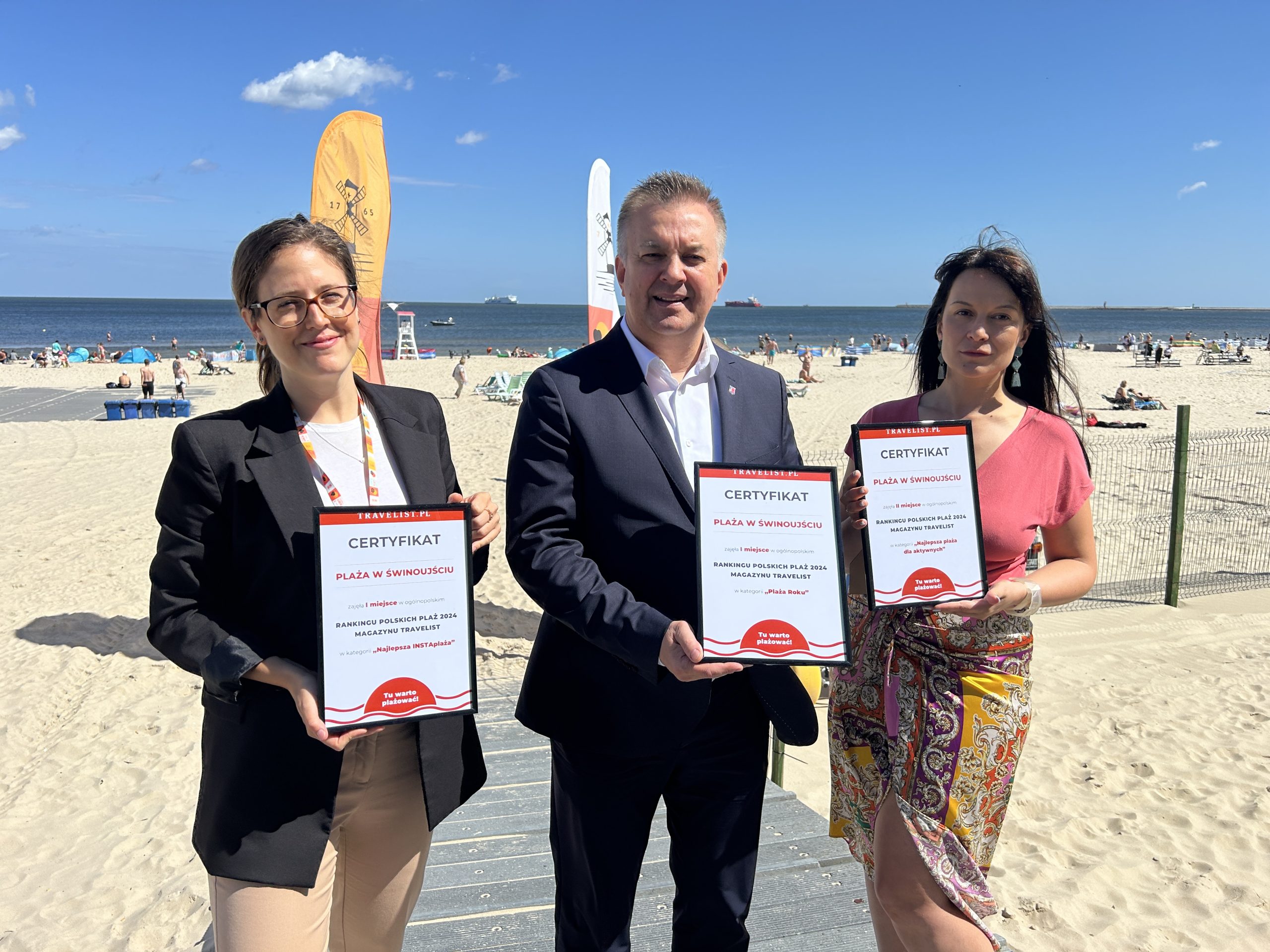 – Bardzo dziękuję plażowiczom za docenienie uroków naszej plaży. Dziękuję także zespołowi OSIR-u za przygotowanie jej do sezonu i codzienną pracę ratowników – powiedział Roman Kucierski, Zastępca Prezydenta Świnoujście odbierając wyróżnienie z rąk Anny Kędzierskiej z magazyny Travelist. – Turystów zapraszam do Świnoujścia, bo to tu jest najcieplejsza woda w Bałtyku – przypomniał.