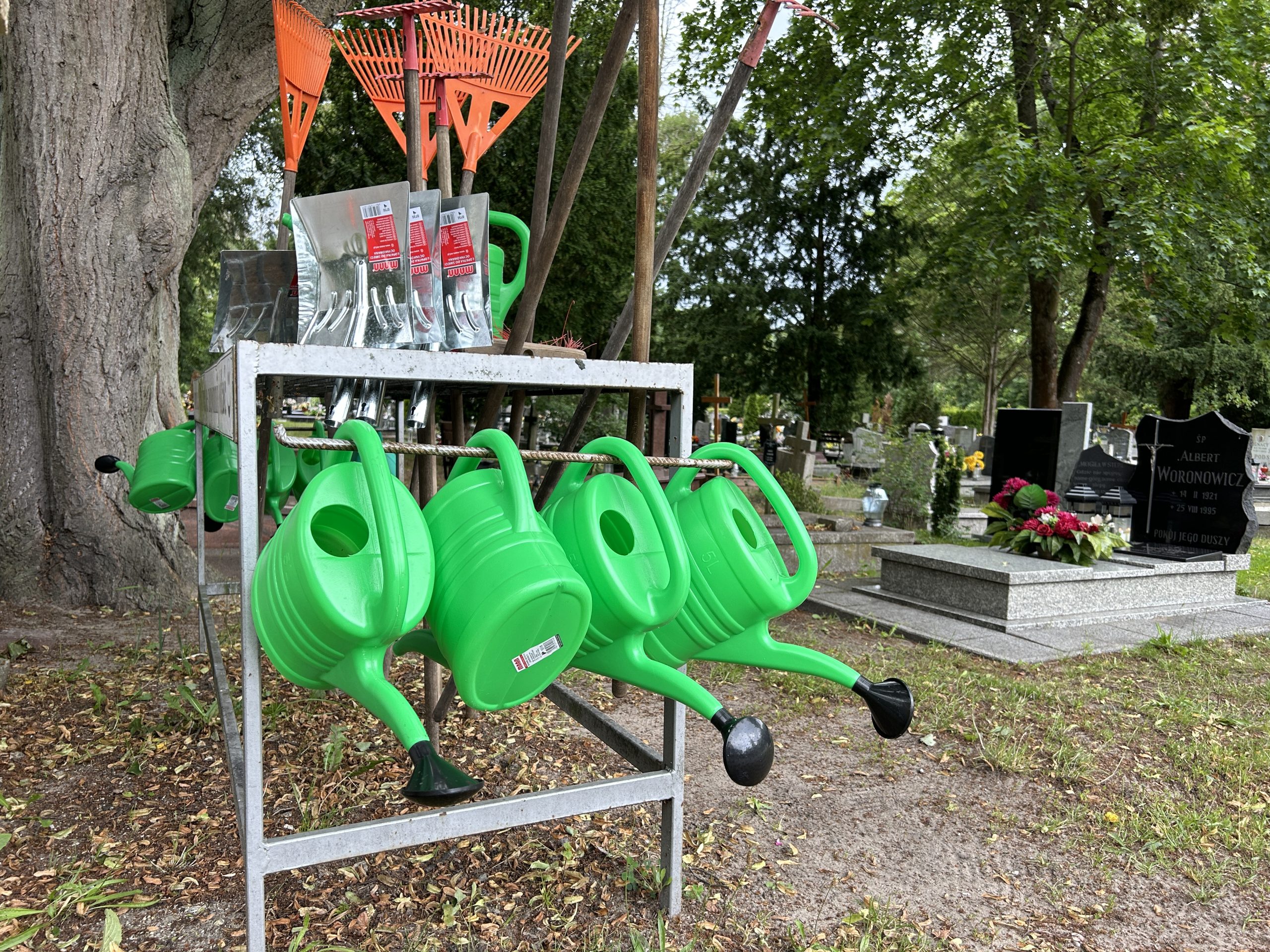 Brakujące konewki, szufle, szczotki, grabie i łopatki uzupełniono na stojakach na cmentarzach komunalnych w Świnoujściu. Osoby opiekujące się grobami najbliższych mogą korzystać ze sprzętu za darmo.