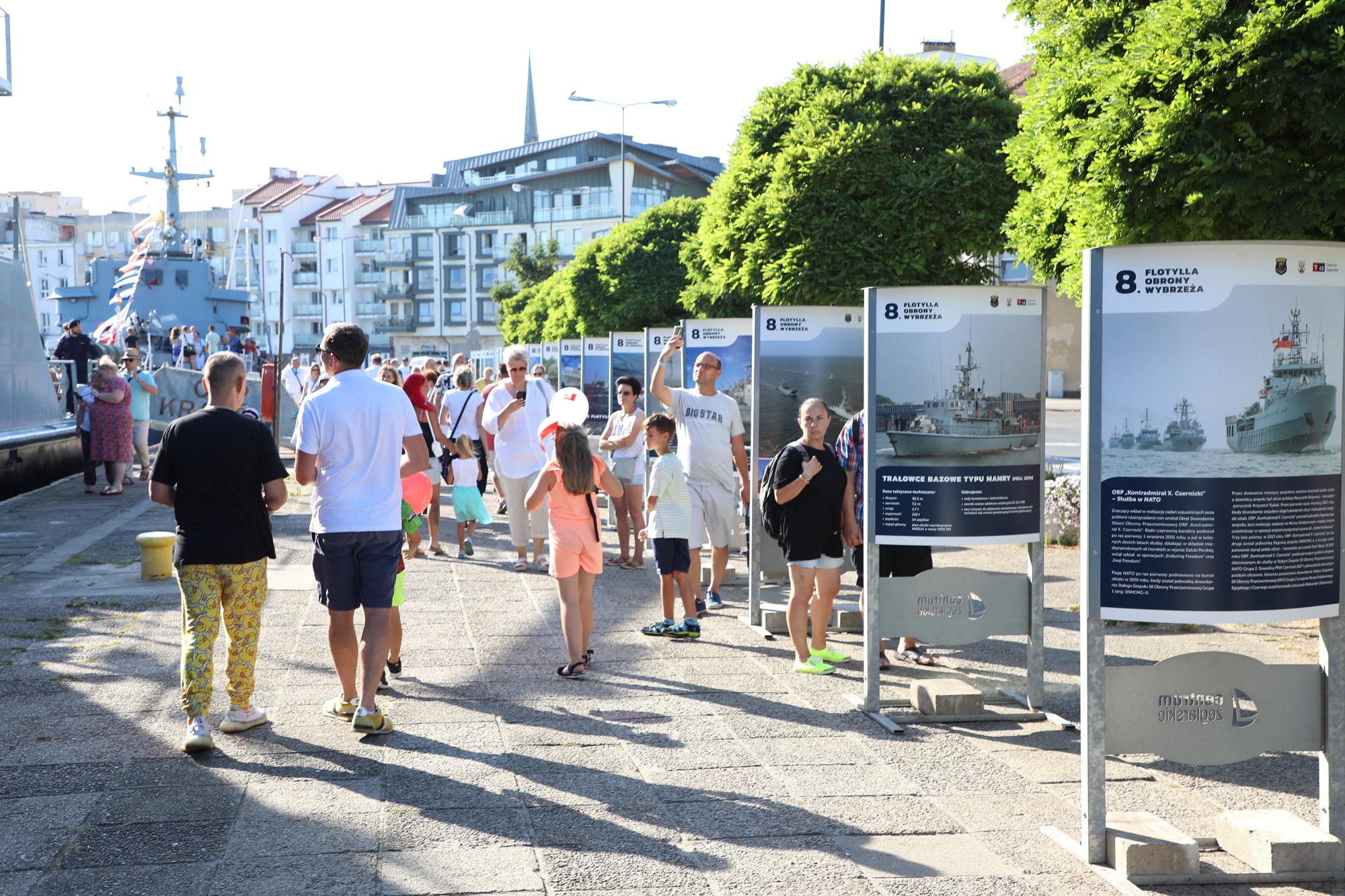 13:00-1900 Zwiedzanie okrętów różnych typów z 8 Flotylli Obrony Wybrzeża (Trałowiec, Okręt Transportowo-Minowy, Okręt Dowodzenia Siłami Obrony Przeciwminowej, Holownik). Jednostki zacumowane będą przy Wybrzeżu Władysława IV od Kapitanatu Portu do stacji paliwowej Orlen.