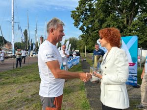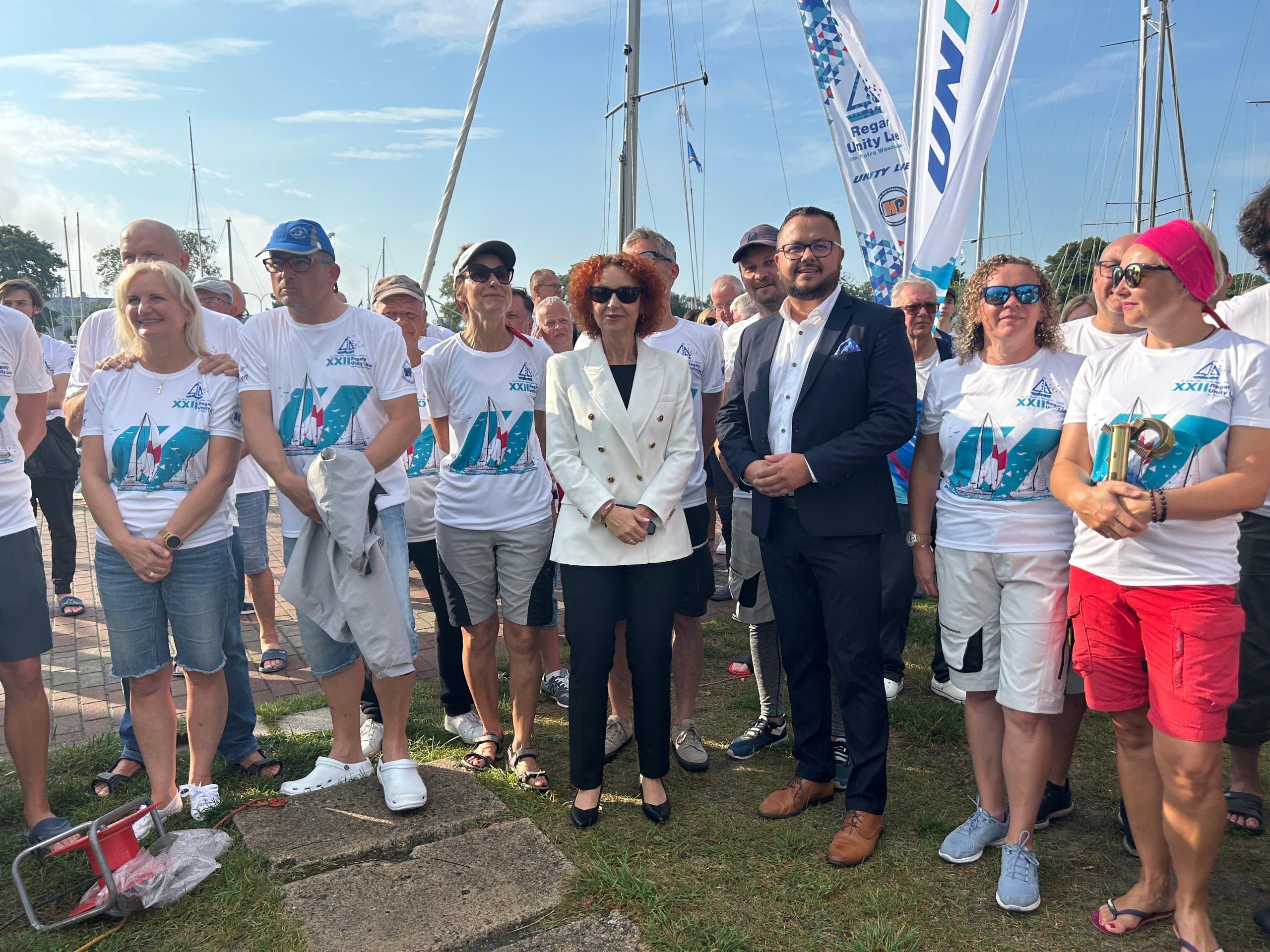 Pani Prezydent Miasta Świnoujście Joanna Agatowska w podwójnej roli – Gospodarza Miasta Świnoujście oraz Patrona Honorowego Regat Unity Line, przywitała wszystkich gości i uczestników regat w towarzystwie Panów Arkadiusza Mazepy i Romana Kucierskiego, Zastępców Prezydenta Miasta Świnoujście, a także Pana Marcina Raubo, Prezesa Zachodniopomorskiego Okręgowego Związku Żeglarskiego.