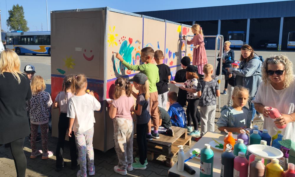 Dzieci pomalowały tekturowy autobus. Jest piękny!