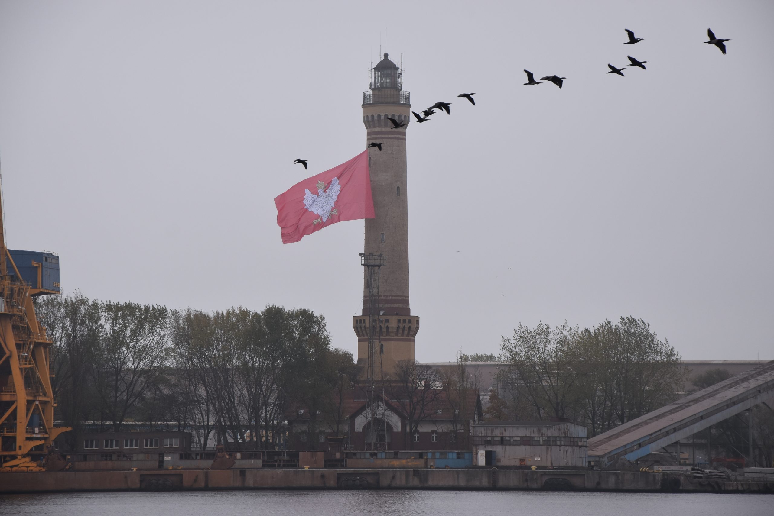 Historyczna flaga powiewa na latarni morskiej w Świnoujściu