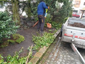 Pielęgnowane są krzewy, które przez wiele lat nie były przycinane ani odpowiednio utrzymywane, co doprowadziło do ich niekontrolowanego rozrostu i nieestetycznego wyglądu. Ponadto, wśród krzewów pracownicy znajdują liczne śmieci, takie jak butelki, opakowania, puszki oraz inne odpady, które niemalże wrosły w roślinność, uniemożliwiając jej prawidłowy rozwój.