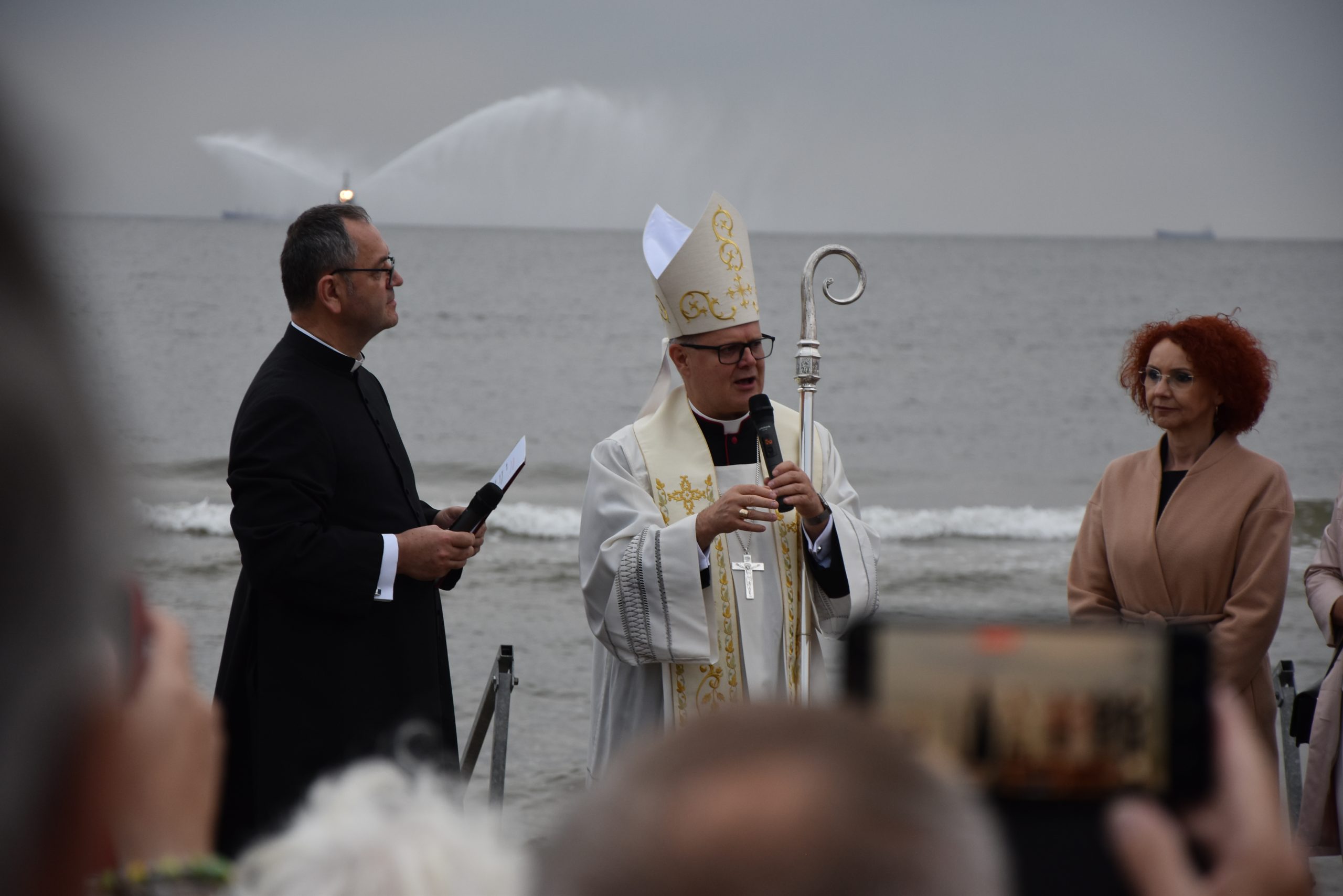 Finał uroczystości miał miejsce na plaży, gdzie czekał już polowy ołtarz. Z okrętu zakotwiczonego nieopodal rozprysnęła się efektowna kurtyna wodna, tworząc wyjątkową scenerię. Arcybiskup pobłogosławił plażę, wodę oraz ratowników, którzy w najbliższych tygodniach będą strzegli bezpieczeństwa kąpiących się. Swoją modlitwą duchowny objął również morze – prosił, by było spokojne i łaskawe dla wszystkich, którzy pragną cieszyć się jego urokami.