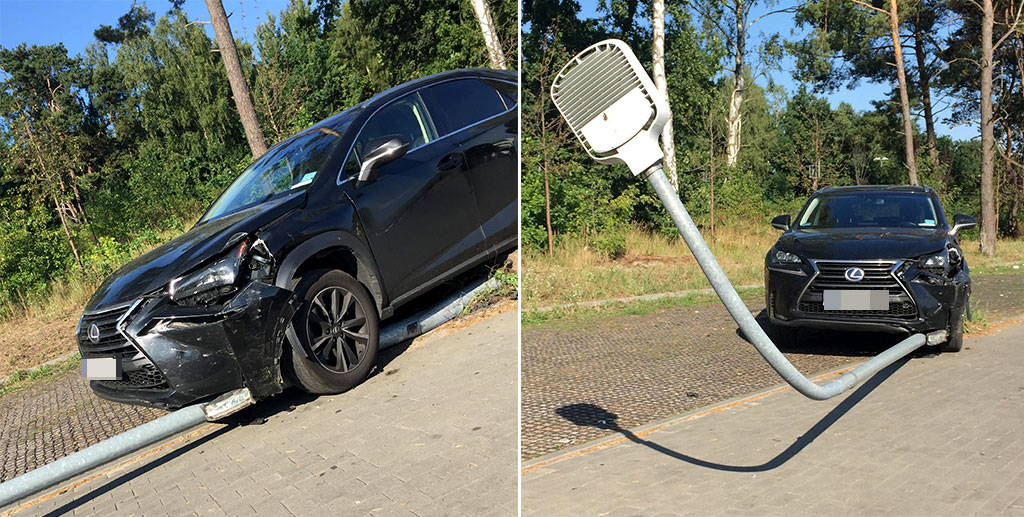 Co wydarzyło się na parkingu supermarketu przy ulicy Legionów w Świnoujściu? Kierująca lexusem wjechała wprost na lampę oświetlającą plac parkingowy. Pojazd „skosił” słup przewracając go na...
