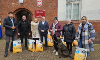 Beata Kastrau, Sławomir Nowicki, Krystian Kośmider, Justyna Lisiak oraz Patrycja Cackowska, przedstawiciele Świnoujskiej Wystawy Pupili, przekazali Wydziałowi Ochrony Środowiska Urzędu Miasta Świnoujście aż 400 kg karmy...